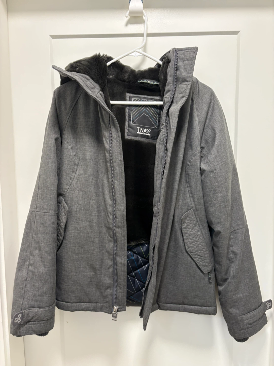 Selling a TNA Vail jacket in grey! It's a size small and in great condition. Perfect for staying warm and stylish during the colder months. Make a great holiday gift.