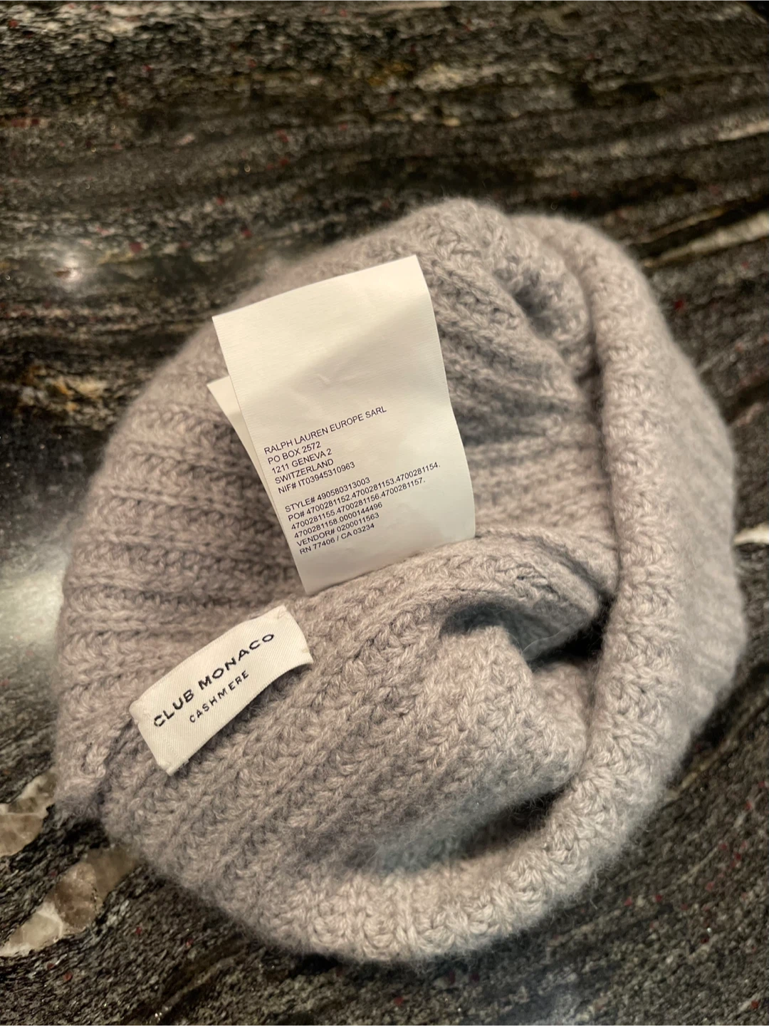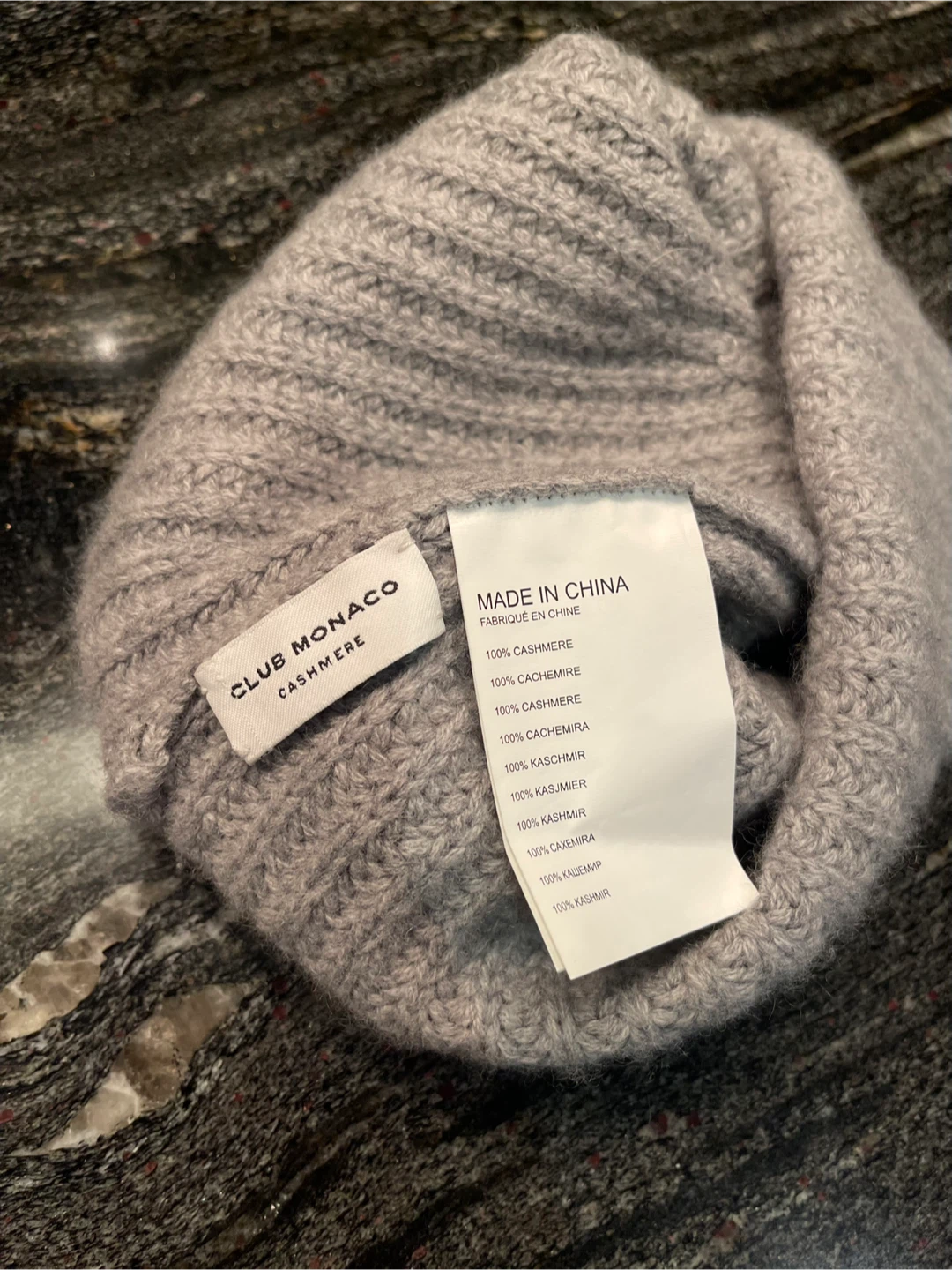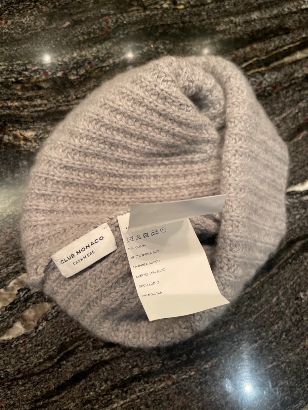 Cozy Club Monaco cashmere beanie in a lovely light grey colour! It's made of 100% cashmere, so it's super soft and warm. Perfect for those chilly Canadian days