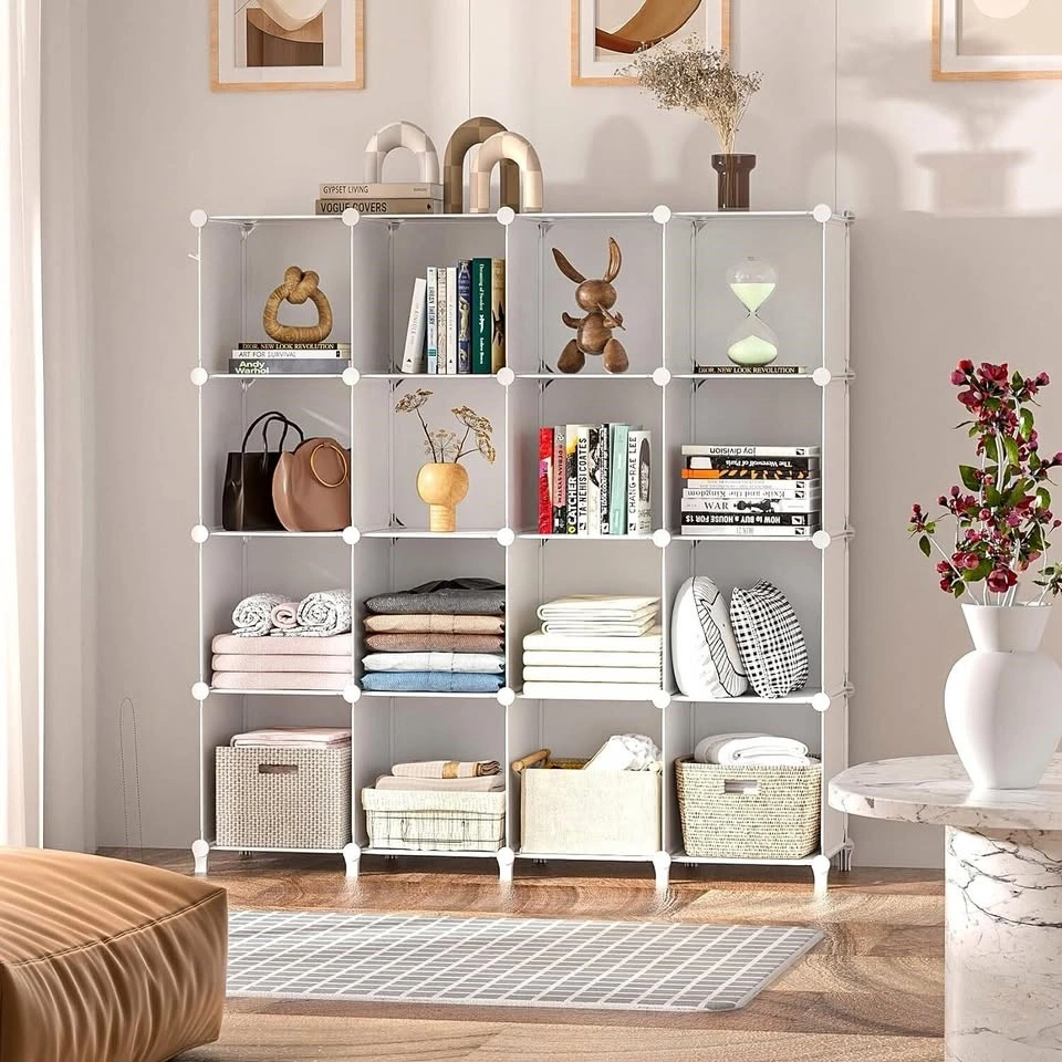 Neprock 16 Cubby Storage Organizer, Closet Clothes Storage Organizer, Cube Shelves Closet Organizers and Storage Shelves for Clothing Storage with Hammer, Bookshelf for Kids (White) - Brand New Sealed in Box