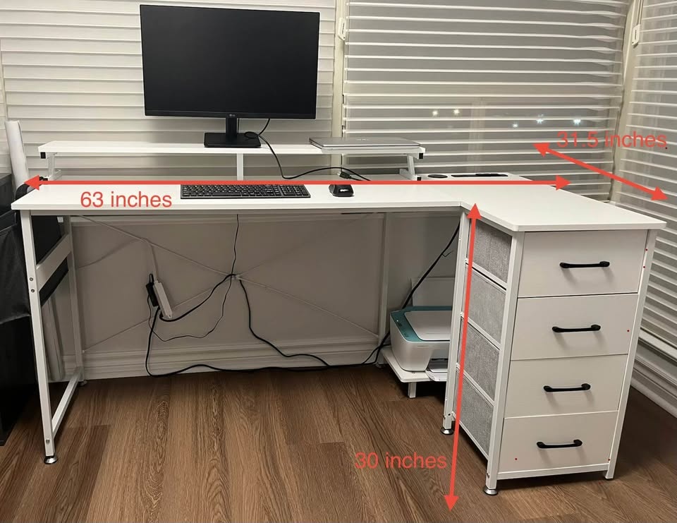 Wayfair Modern White L-Shaped Desk with Storage & Monitor Shelf