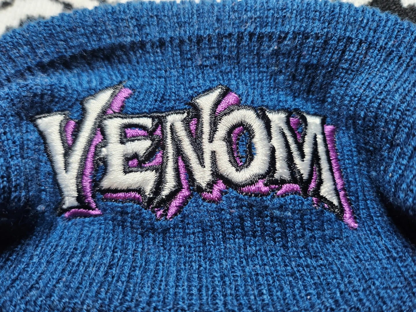Kids Winter Marvel Venom beanie! It's in great condition and features the Venom logo. Perfect for any Marvel fan!