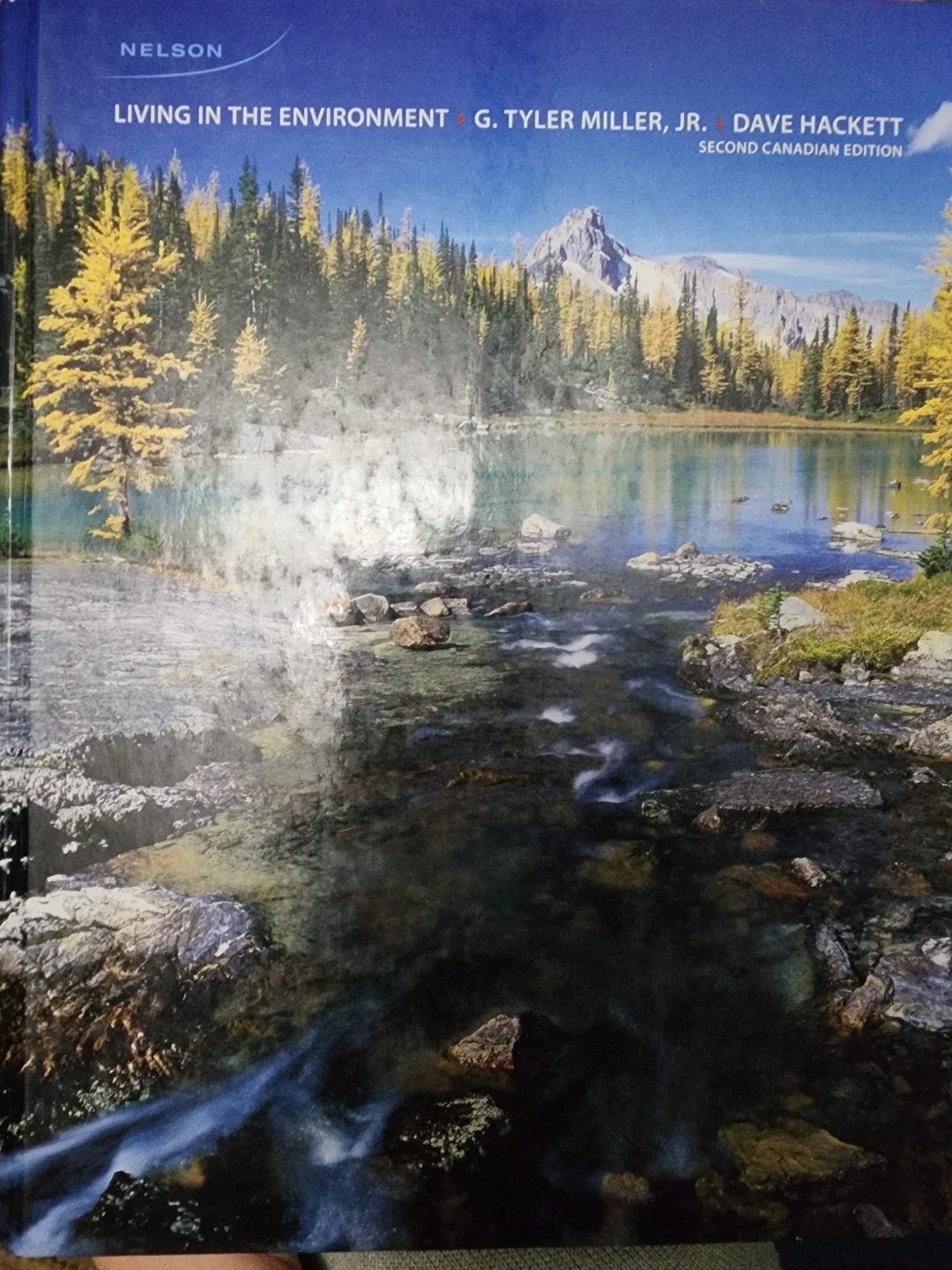 Selling "Living in the Environment" by G. Tyler Miller Jr. and Dave Hackett. It's the second Canadian edition from Nelson. Great for environmental studies or anyone interested in learning more about our planet