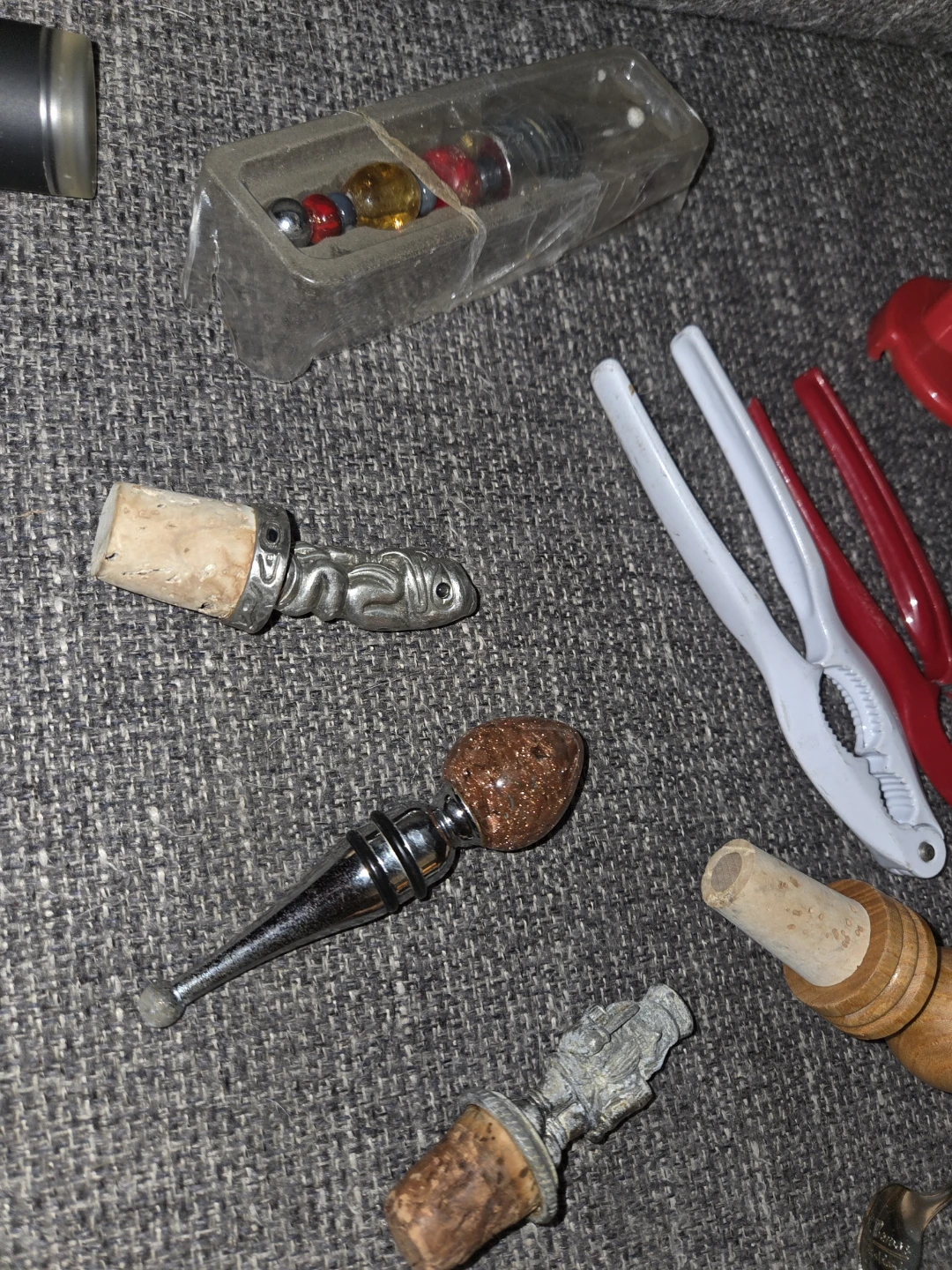 Selling a collection of assorted kitchen and bar tools. Includes bottle stoppers, nutcrackers, and other handy gadgets for your home bar or kitchen. Perfect for anyone looking to expand their tool collection!