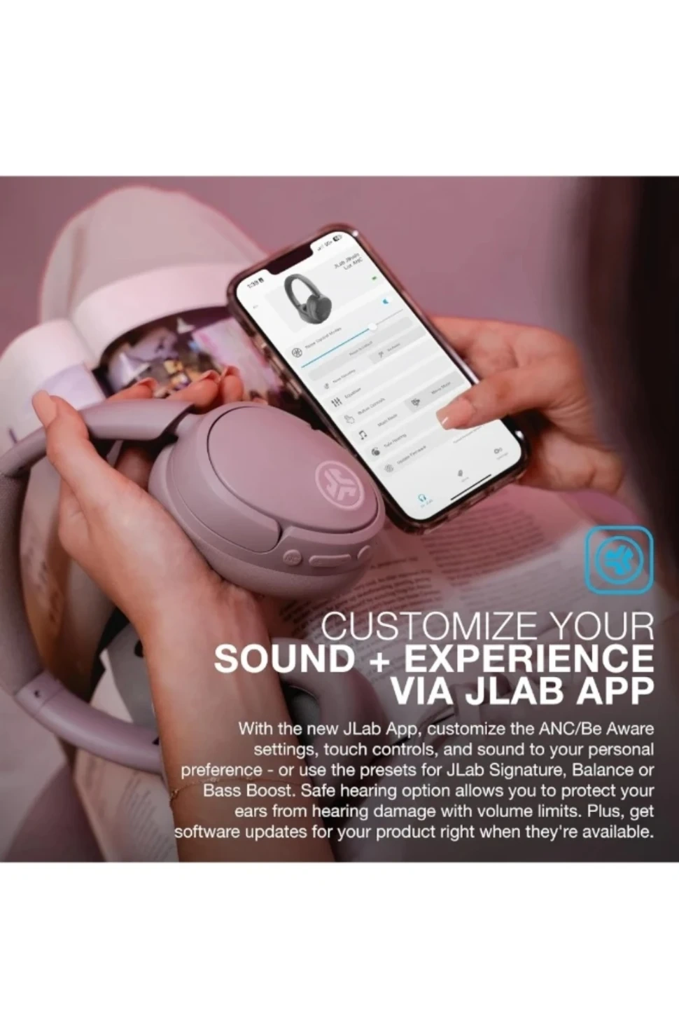 ๐ฑ CUSTOMIZE YOUR SOUND + EXPERIENCE VIA JLAB APP: With the new JLab App, customize the ANC/Be Aware settings, touch controls, and sound to your personal preference - or use the presets for JLab Signature, Balance or Bass Boost. Safe hearing option allows you to protect your ears from hearing damage with volume limits. Plus, get software updates for your product right when they're available.