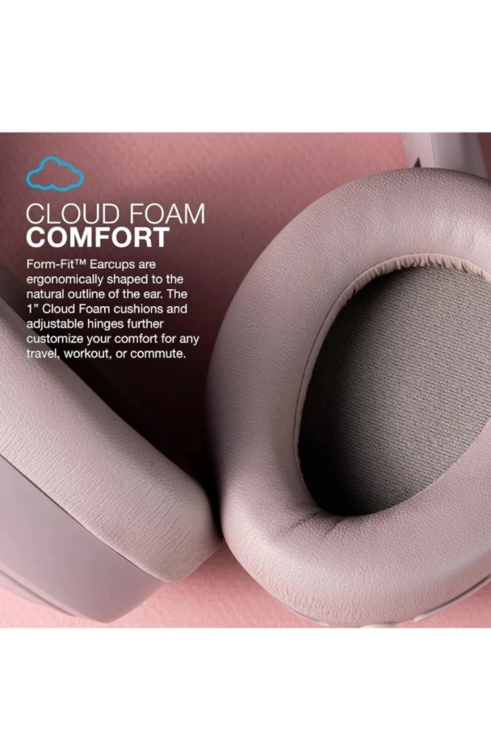 โ๏ธ CLOUD FOAM COMFORT: Form-Fit Earcups are ergonomically shaped to the natural outline of the ear. The 1โ Cloud Foam cushions and adjustable hinges further customize your comfort for any travel, workout, or commute.