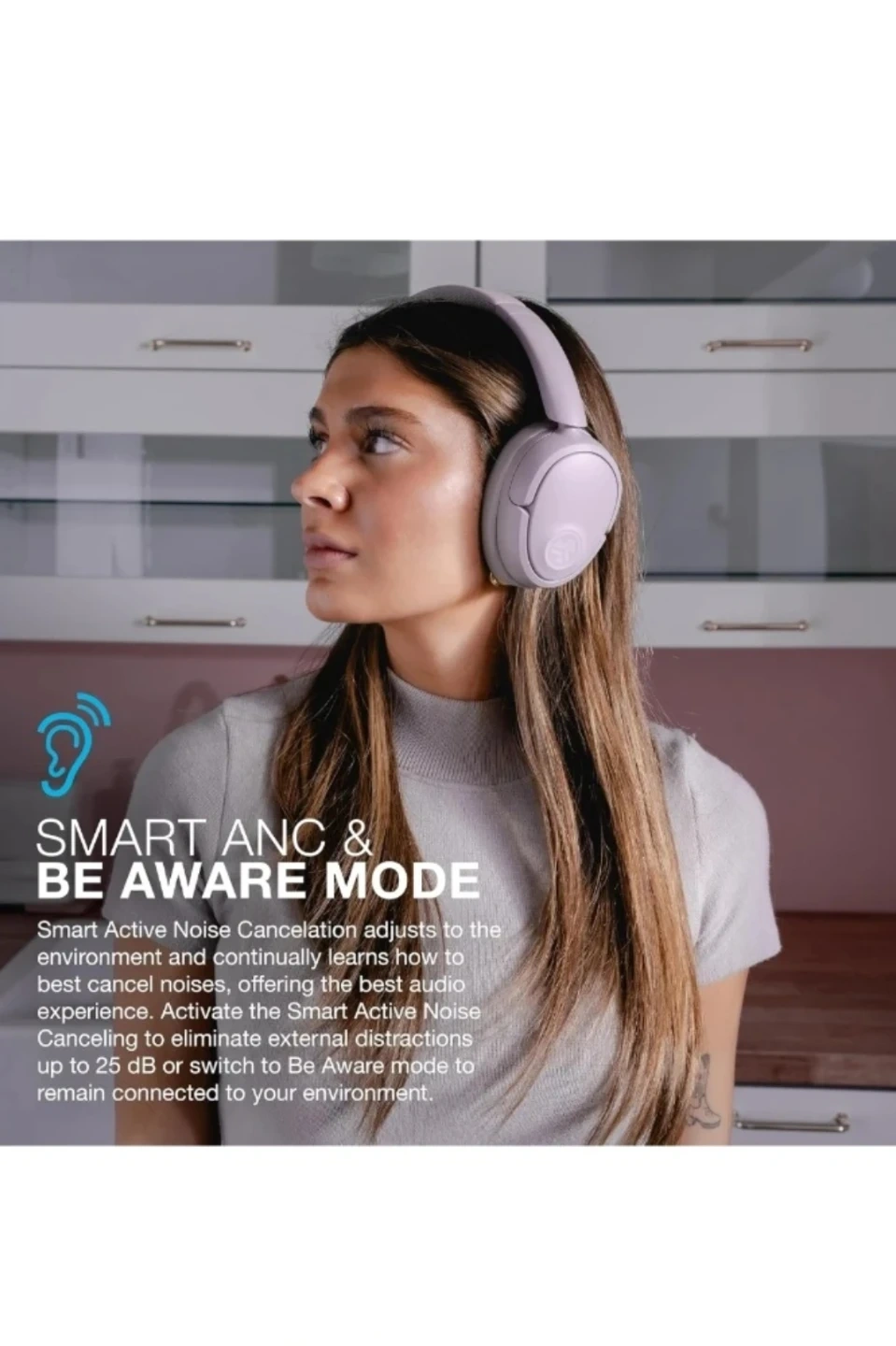๐ง ๐ SMART ANC AND BE AWARE MODE: Smart Active Noise Cancelation adjusts to the environment and continually learns how to best cancel noises, offering the best audio experience. Activate the Smart Active Noise Canceling to eliminate external distractions up to 25 dB or switch to Be Aware mode to remain connected to your environment.