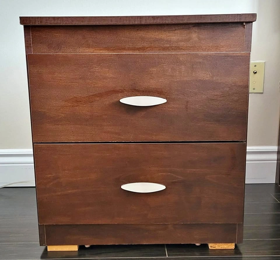 Solid dark brown wooden nightstand with 2 smooth-glide drawers β perfect for storing bedside essentials. Neutral, clean, and modern design that easily matches most bedroom furniture sets.