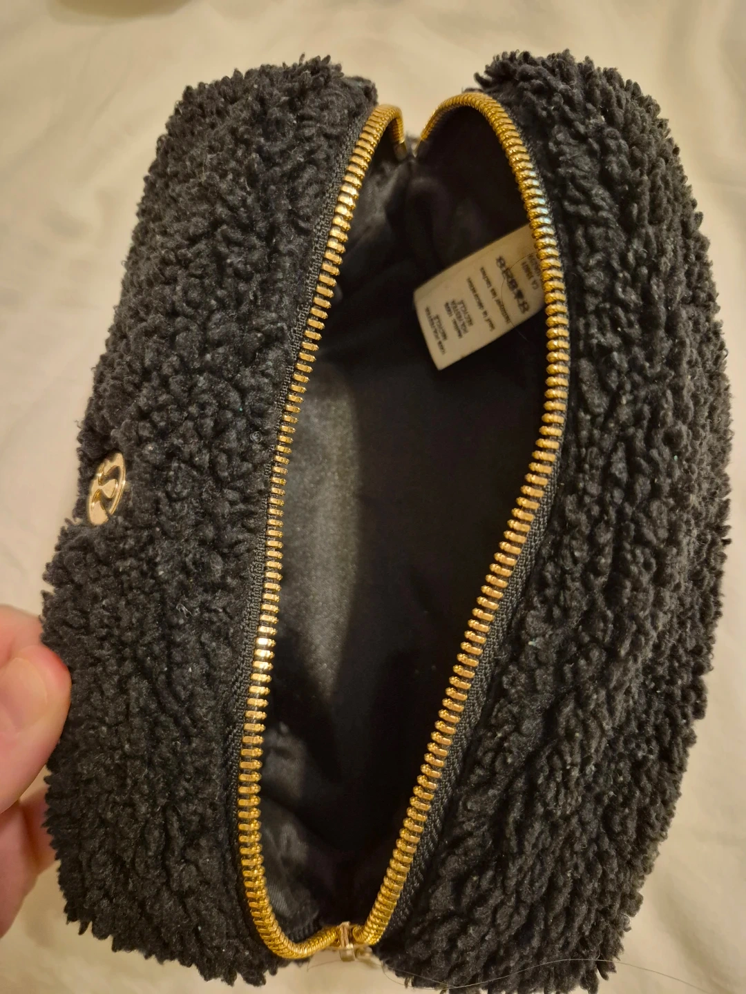 Selling a black Lululemon makeup bag. It has a fuzzy exterior and a gold zipper. Perfect for travel or everyday use!