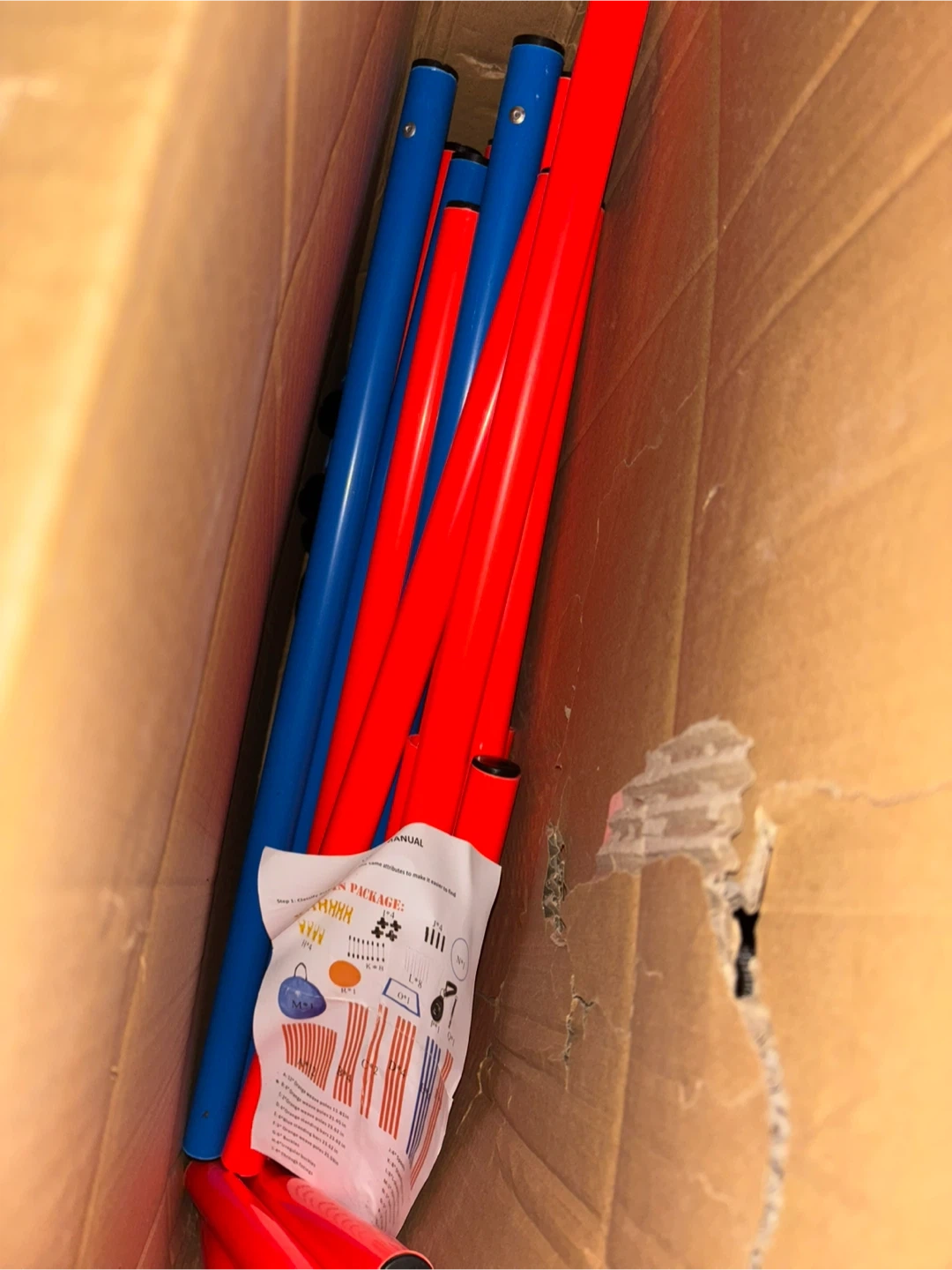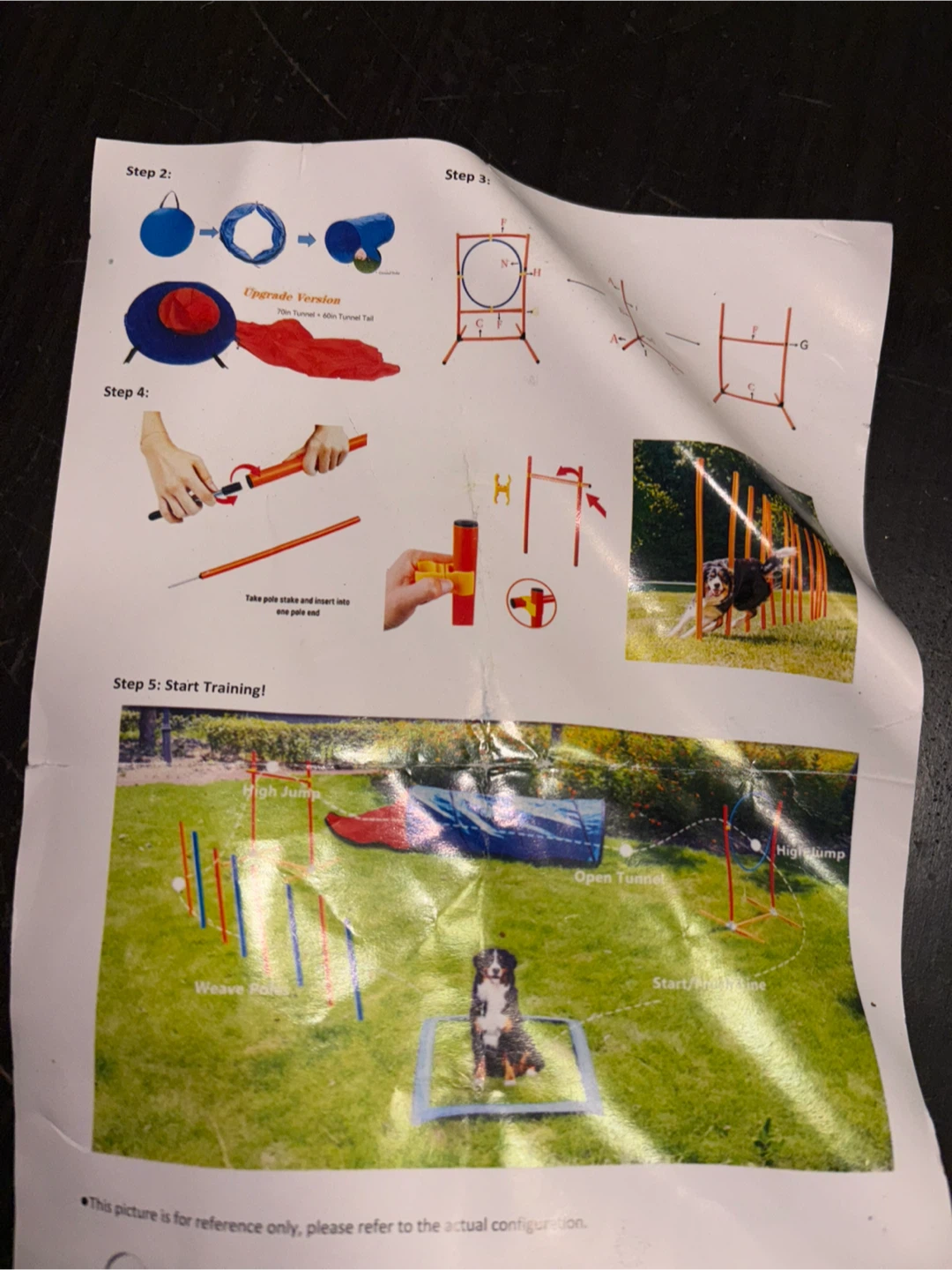 Get your furry friend active with this dog agility training set! It includes various components for setting up different courses, such as weave poles, a tunnel, and a high jump. Comes with a user manual to help you get started. Perfect for backyard fun and training!