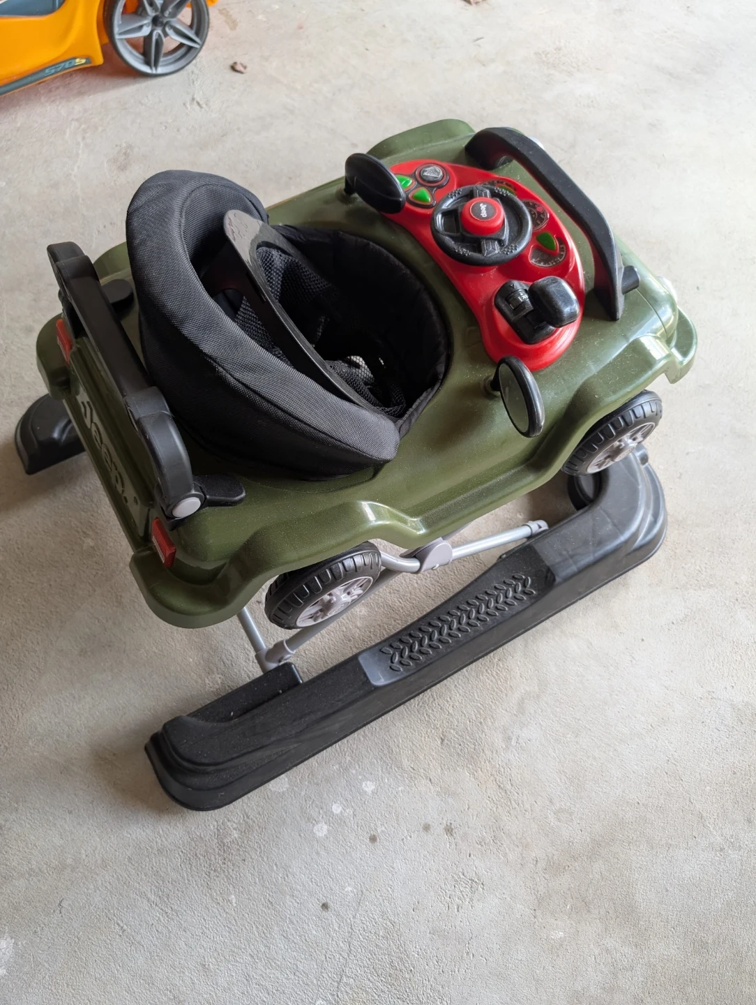 Got a Jeep 3-in-1 baby walker that builds gross motor skills. It can be used as a baby walker, push-behind, and rolling toy car. Also have a rocking zebra! Moving sale. New gifted from USA and never used.