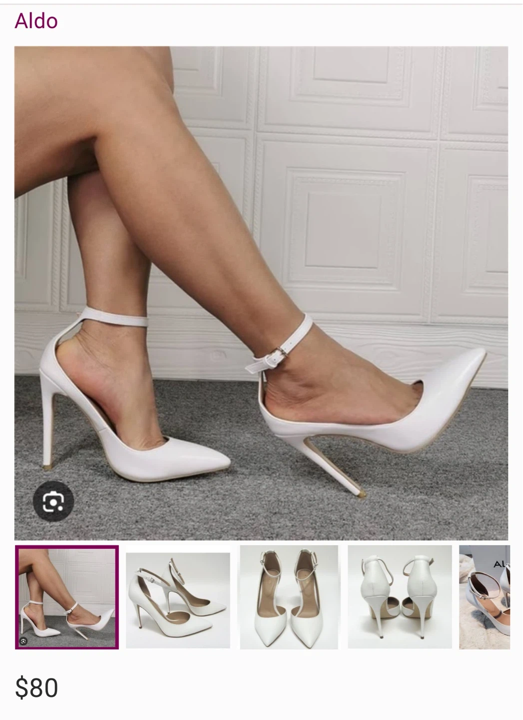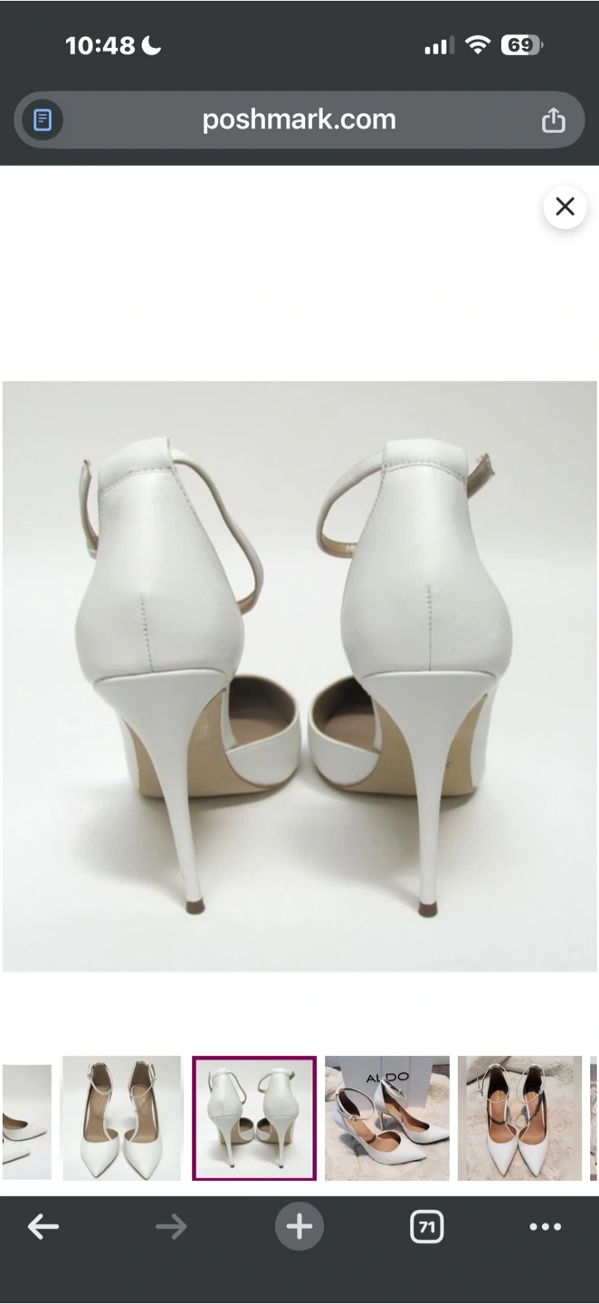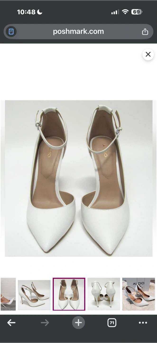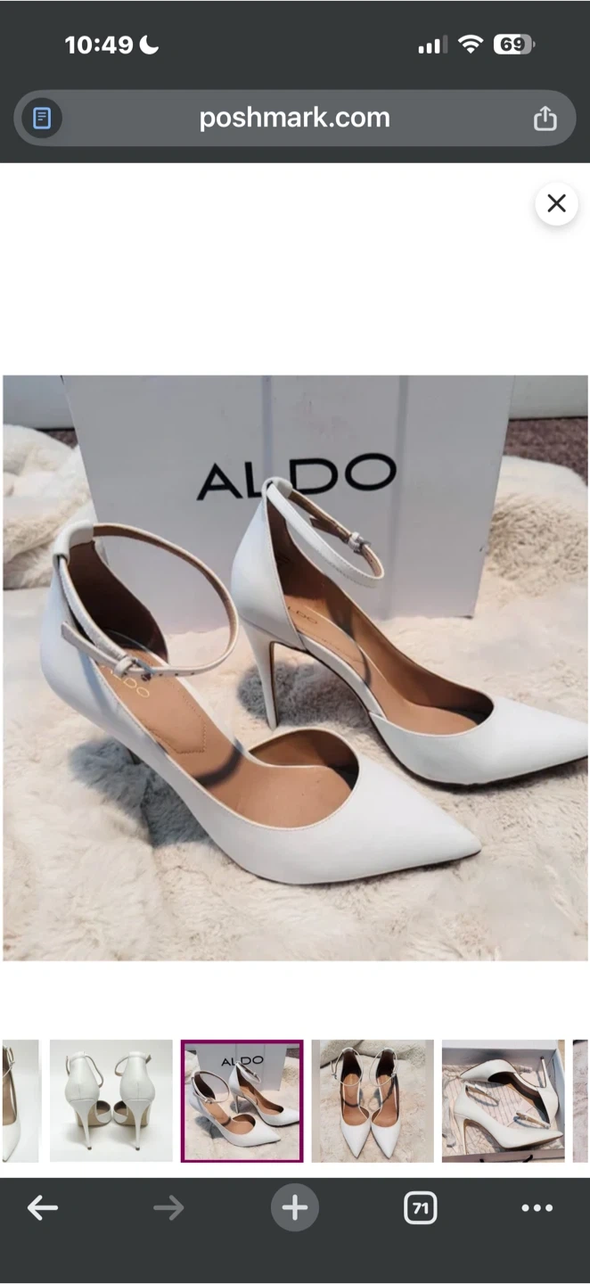 Selling a pair of Aldo white heels. They are size 7.5 and in great condition! Perfect for dressing up any outfit. Please message me with any questions! Originally bought for $80. i’m located at Lawrence and Overture check my other listing please.