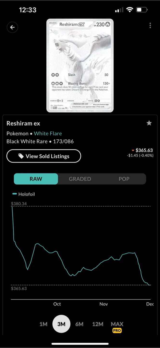 Reshiram EX Holofoil Pokemon Card $310 FIRM