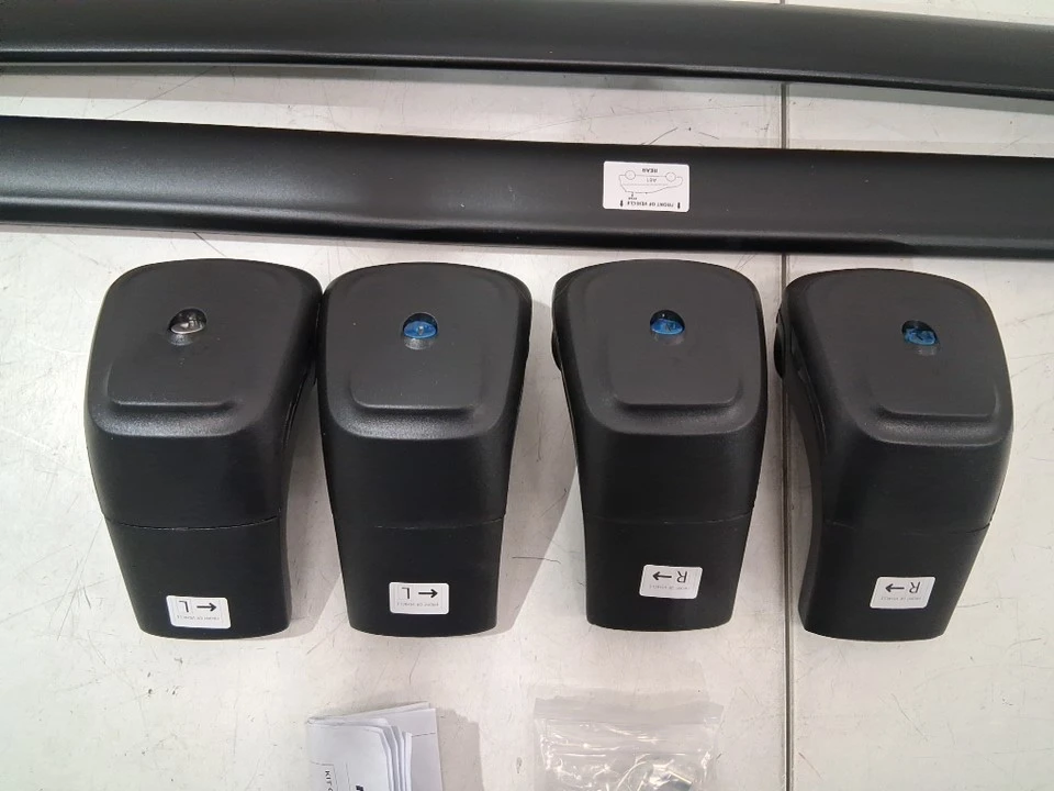 These heavy-duty roof rack cross bars are compatible with Chevrolet Suburban, Tahoe, GMC Yukon XL, and Cadillac Escalade models from 2021 to 2025. The roof rack is in new condition, never installed, and comes with the original keys and installation hardware.