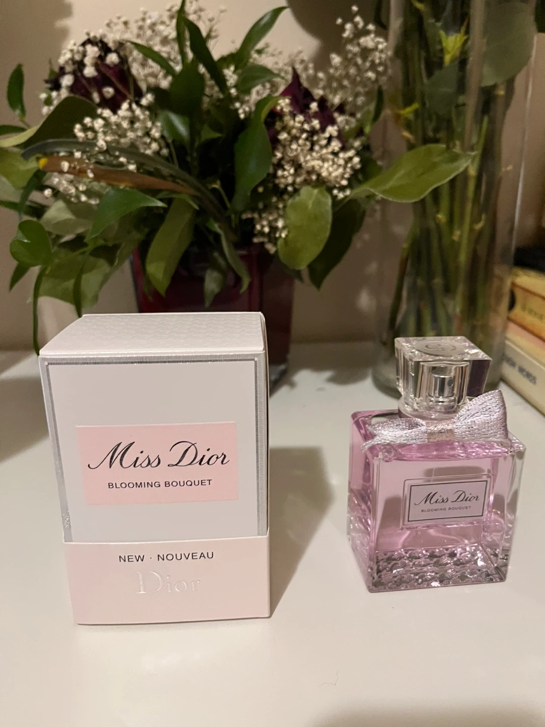 Selling a bottle of Miss Dior Blooming Bouquet perfume. It's a 100ml bottle and comes with the original box. A lovely, light floral scent, and a wonderful Christmas gift.