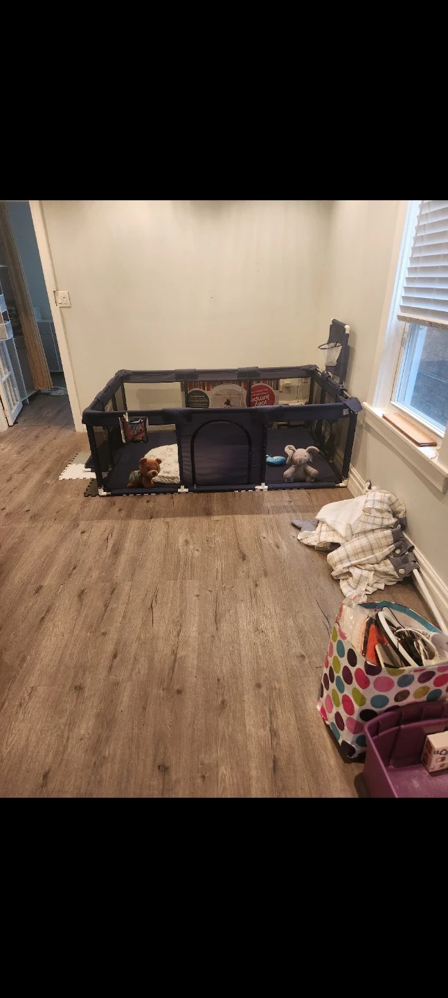 Selling a used baby playpen in good condition! It comes with a basketball hoop attachment for extra fun. Perfect for keeping your little one safe and entertained.