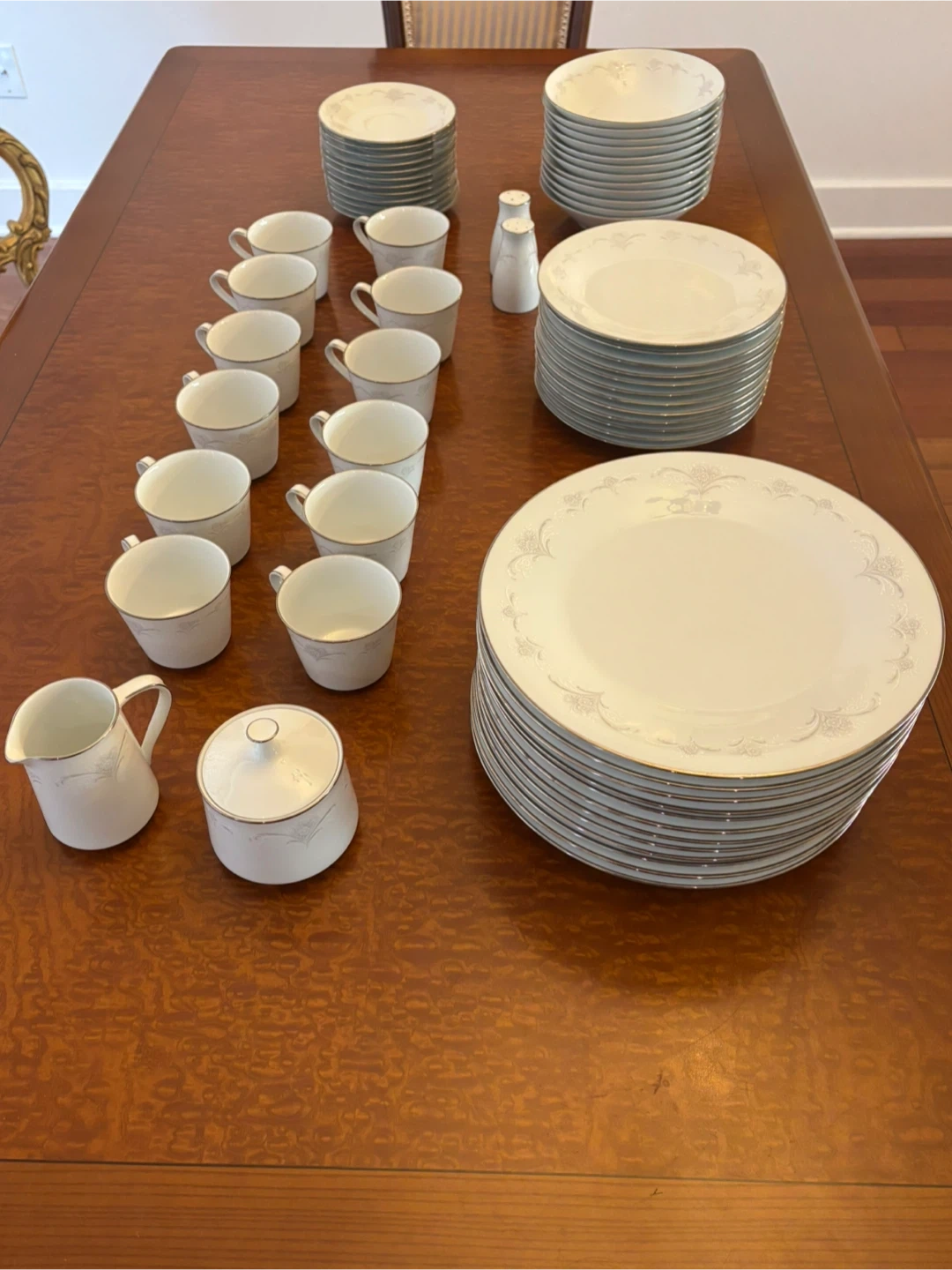 Selling a Noritake china set in the Casablanca pattern. This elegant set would be perfect for special occasions or adding a touch of class to your everyday dining. The set includes various pieces, as pictured. It's in great condition and ready for a new home!