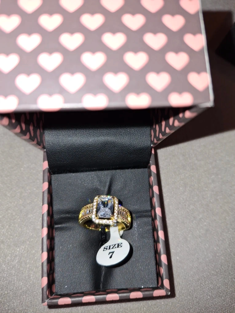 Selling a beautiful gold ring featuring a striking white stone. It's a size 7 and comes with its original box, perfect for gifting or keeping it safe. The ring is in excellent condition!