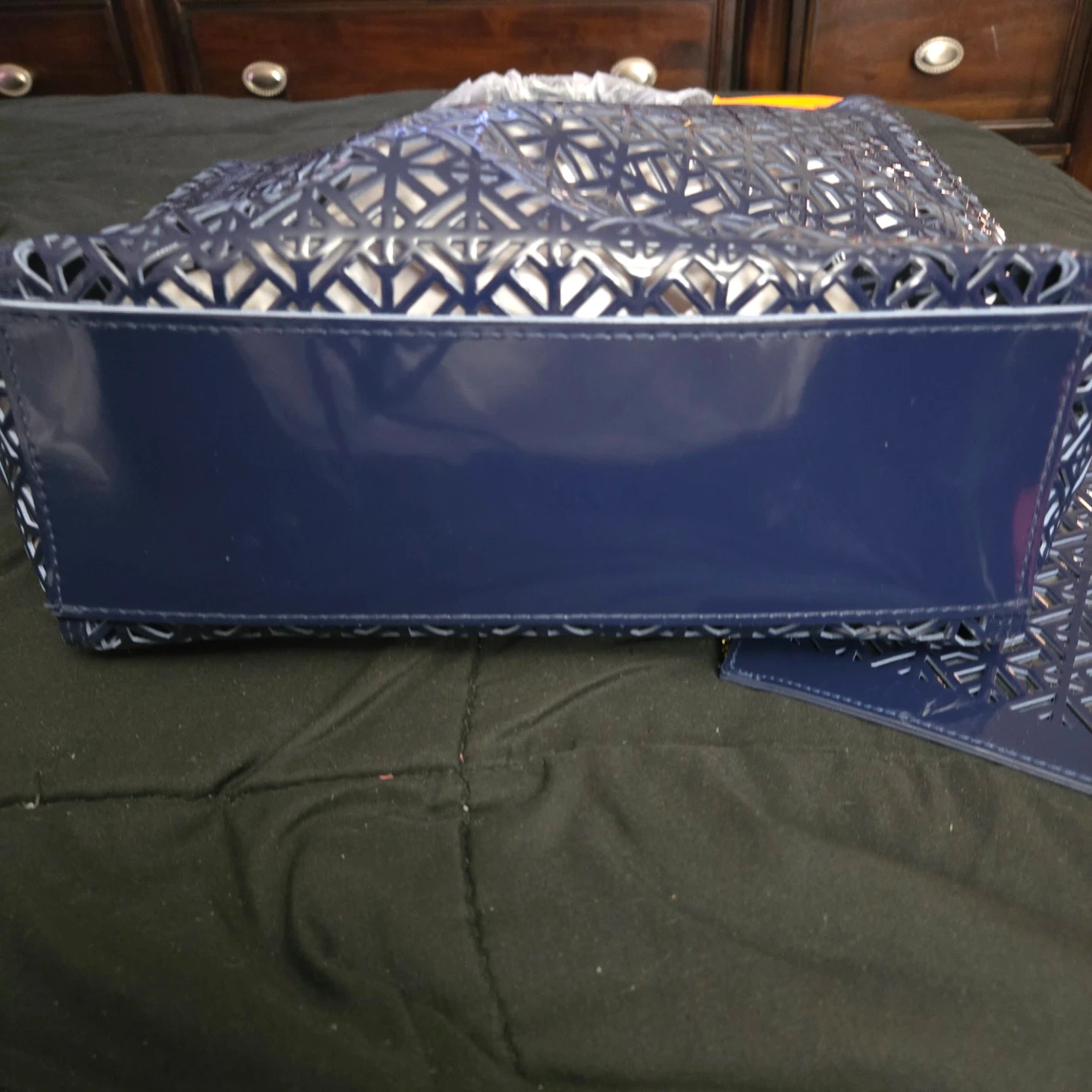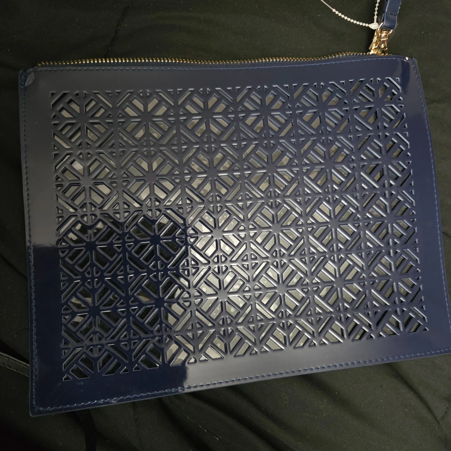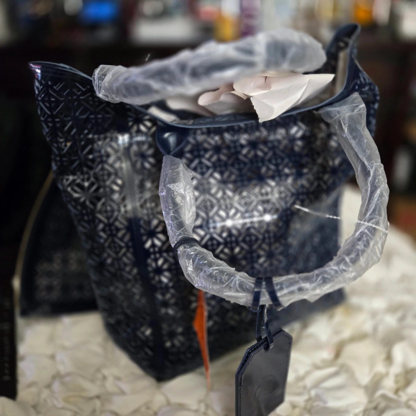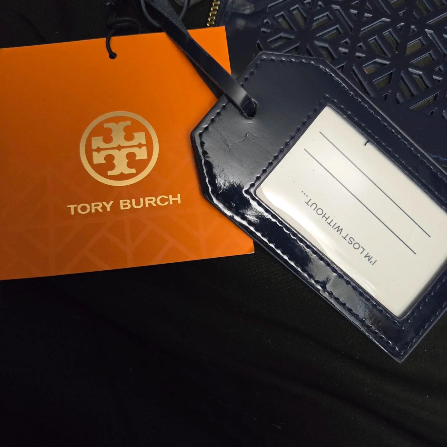 This is an exclusive gift from the Tory Burch Fragrance Collection. It's a blue tote bag and includes a matching clutch. The bag is a tote/bag/bolso/borsa/torba/shopper/tote bag