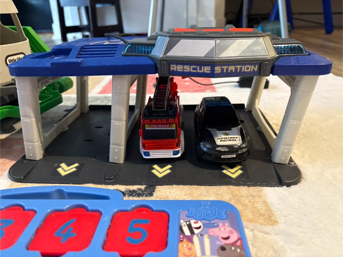 4. Rescue Station with police & firetruck, has buttons to press that comes out with police and dispatcher audio sounds