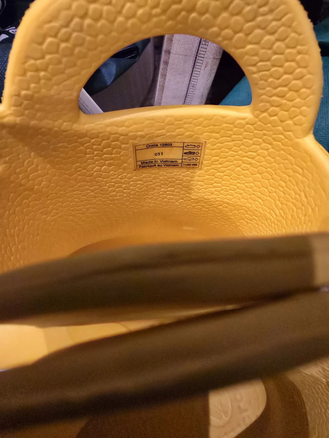 These bright yellow Crocs Handle It rain boots are new and ready for some puddle jumping! Size c11, perfect for little feet. The handles make them easy for kids to put on and take off themselves