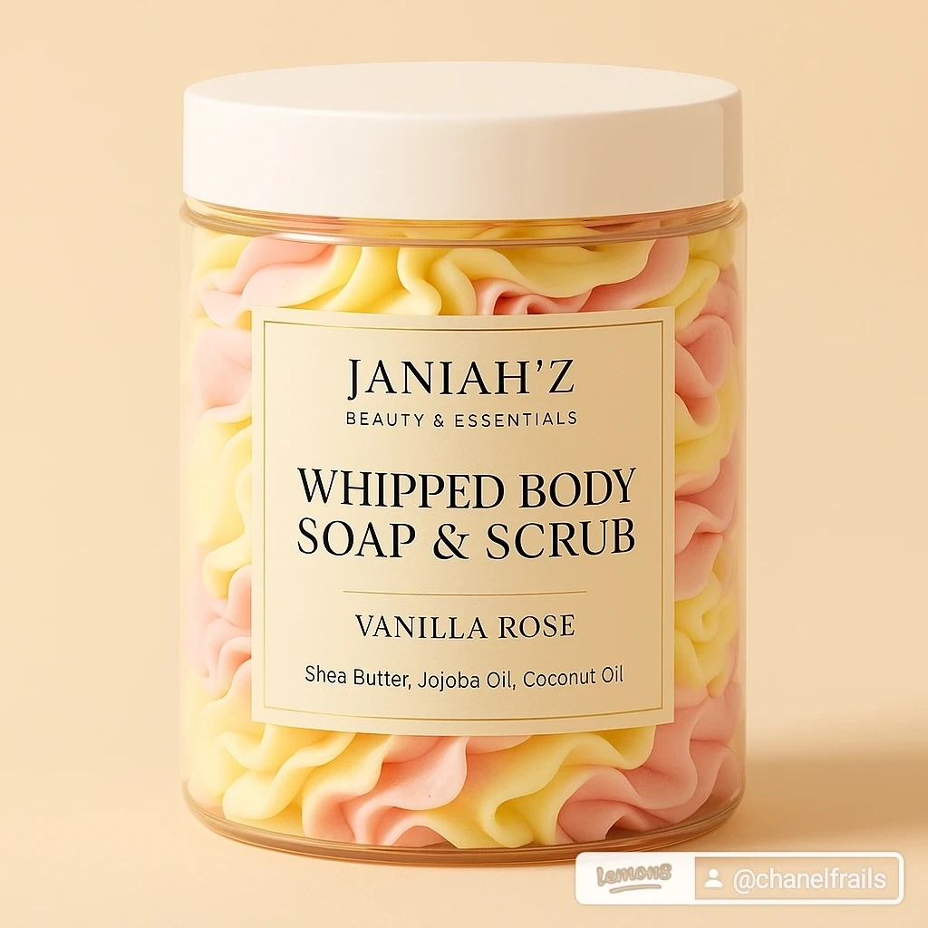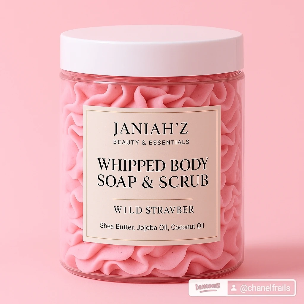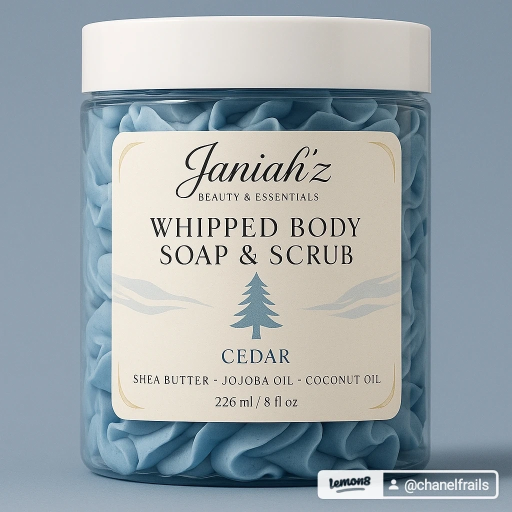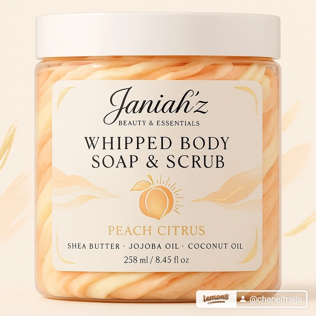 I'm selling Janiah'z Whipped Body Soap & Scrub. This soap contains Shea Butter, Jojoba Oil, and Coconut Oil. It comes in a variety of scents including Vanilla Rose, Wild Strawberry, Cedar, and Peach Citrus. Perfect for exfoliating and moisturizing your skin