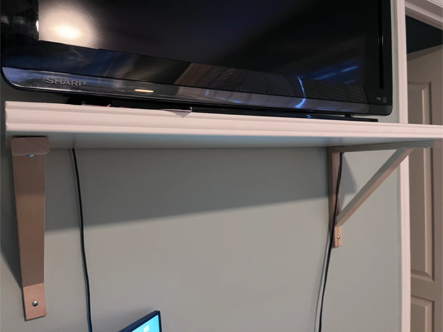 Selling a white wall shelf that's in great shape! It comes with the necessary brackets for easy installation. Perfect for adding some extra storage or display space to any room