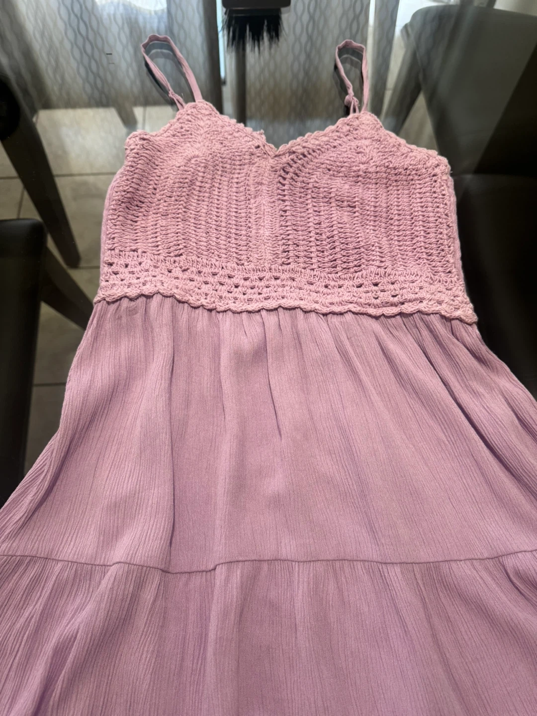 Selling a cute purple dress with a crochet top! It's in great condition and ready for a new owner. The dress is perfect for summer or a casual outing. Feel free to reach out if you're interested! Used once