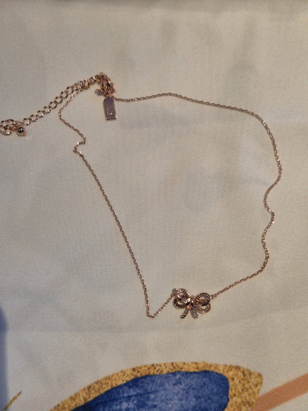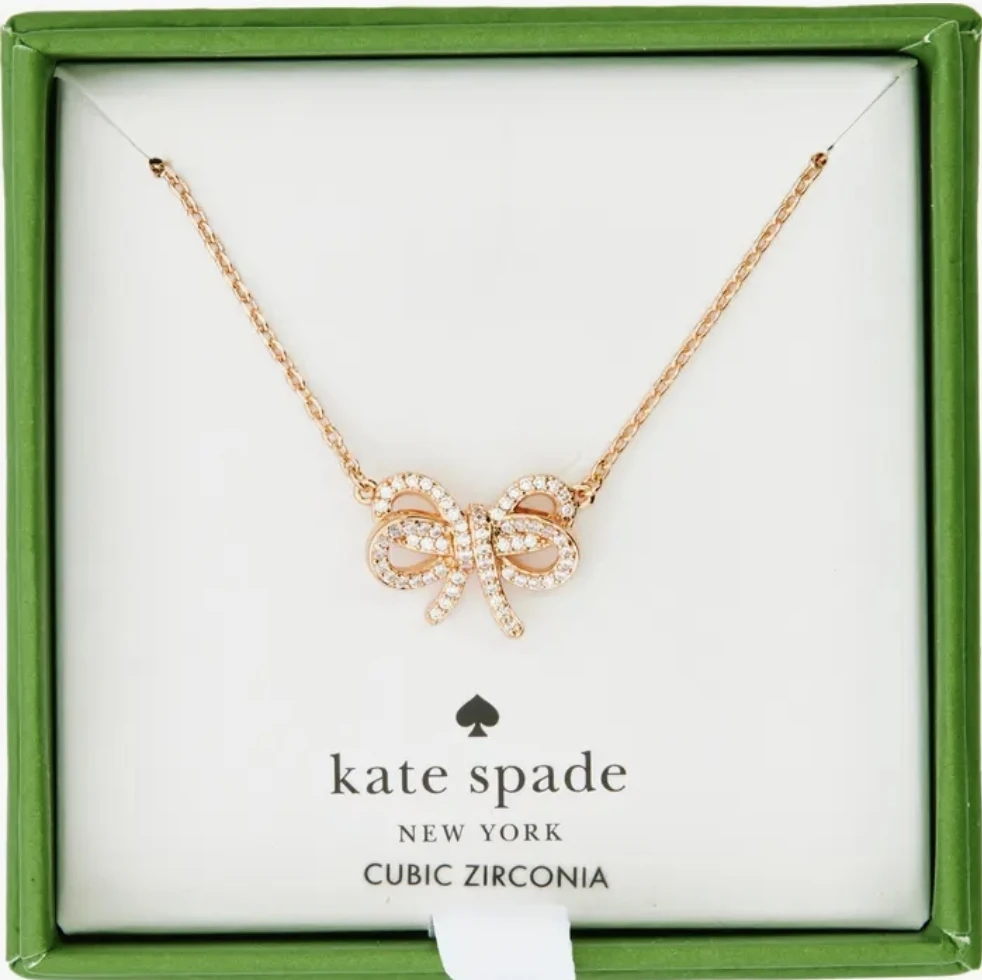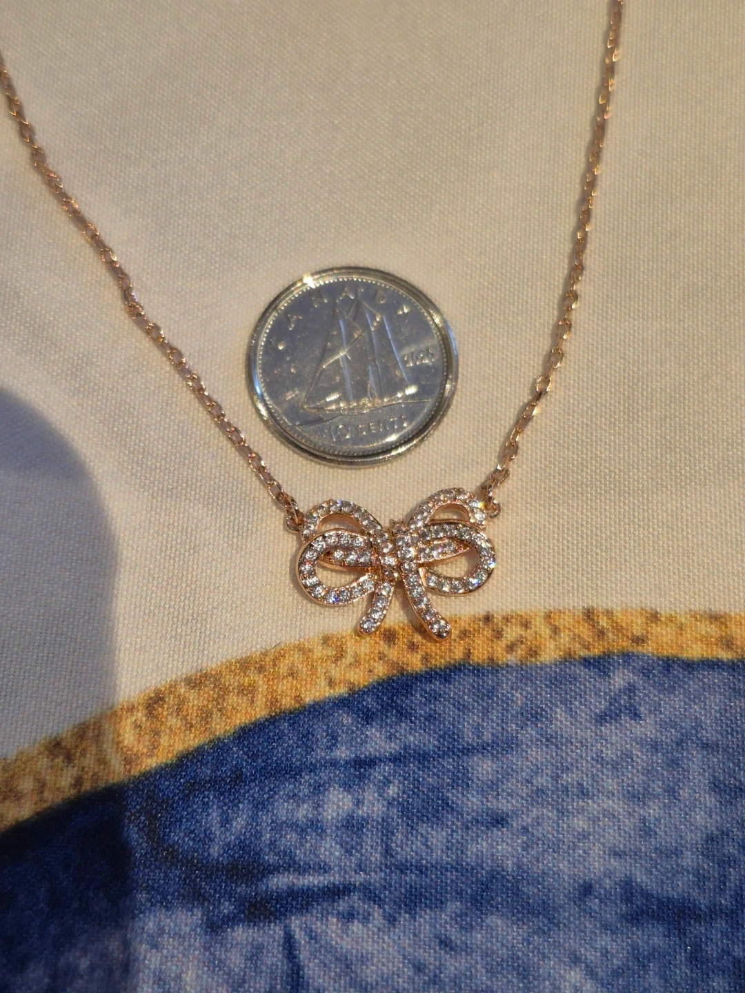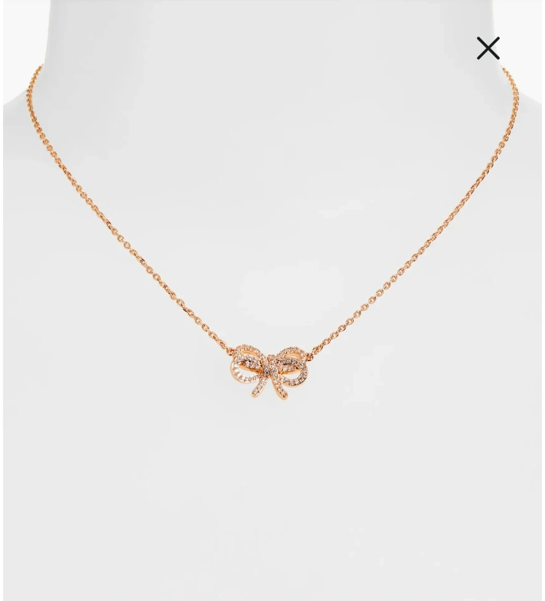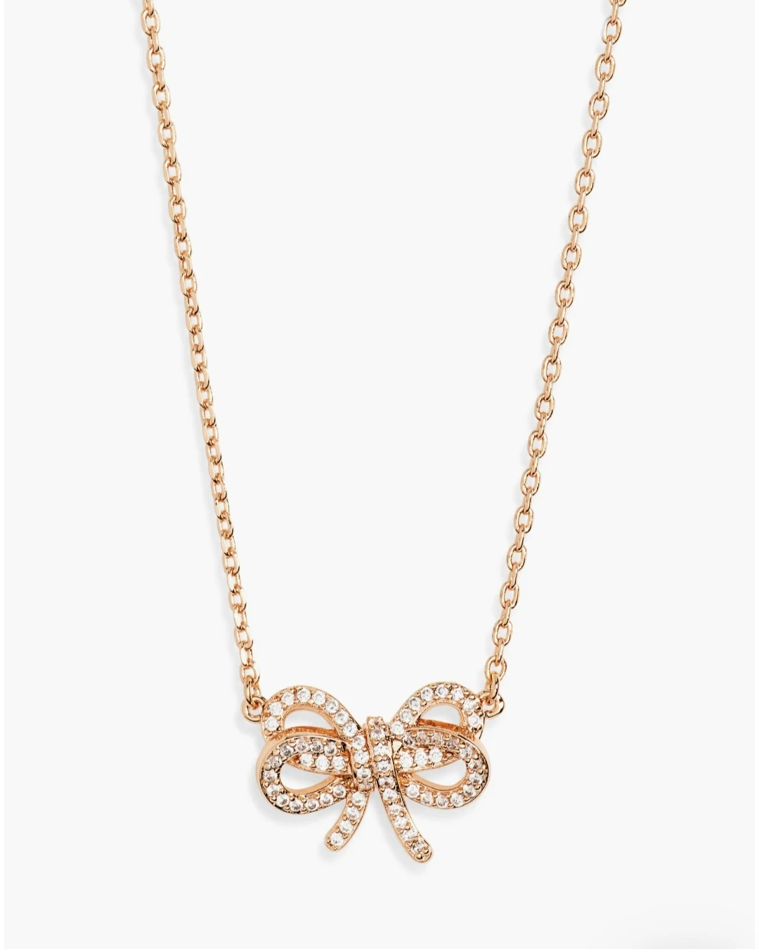 A darling bow-shaped pendant adorned with glitzy pavé stones brings coquettish vibes to a delicate chain that instantly sweetens any neckline.