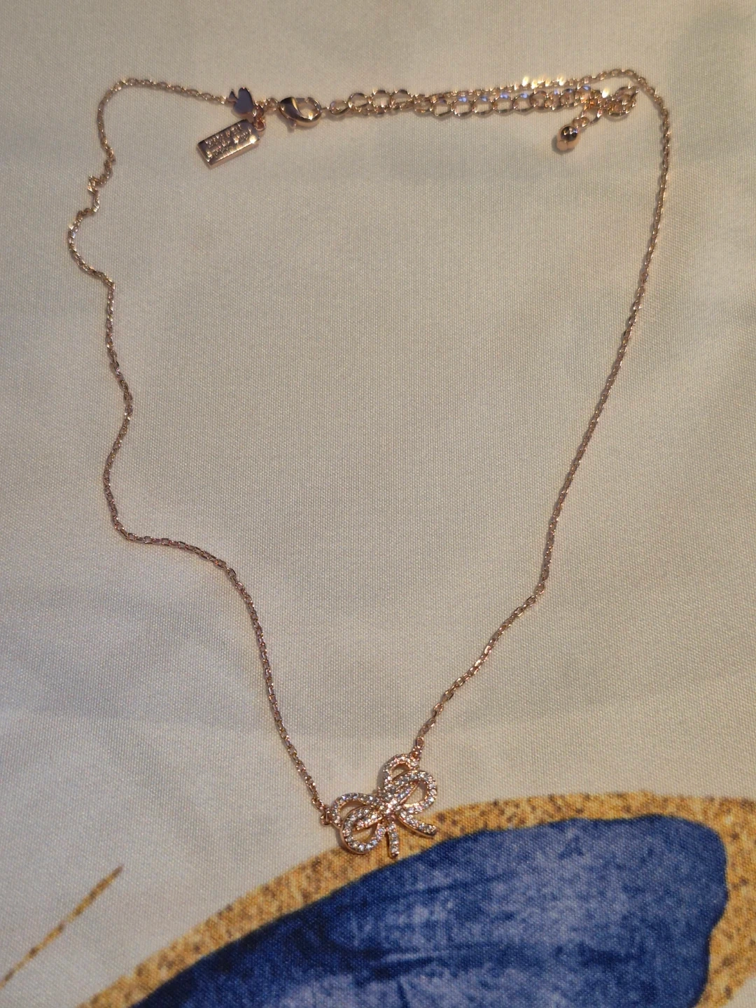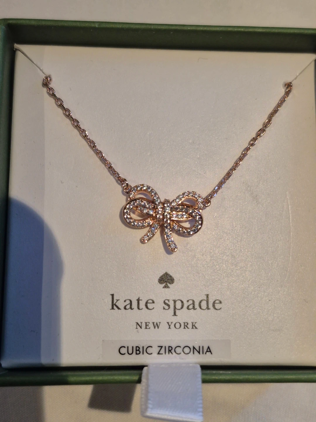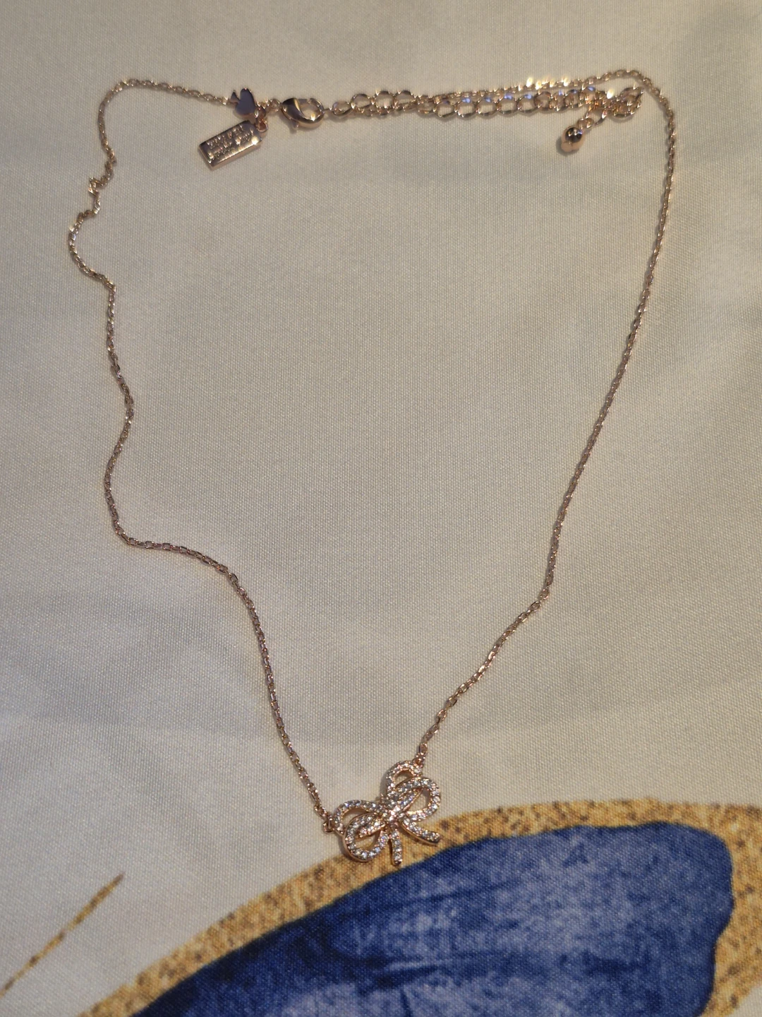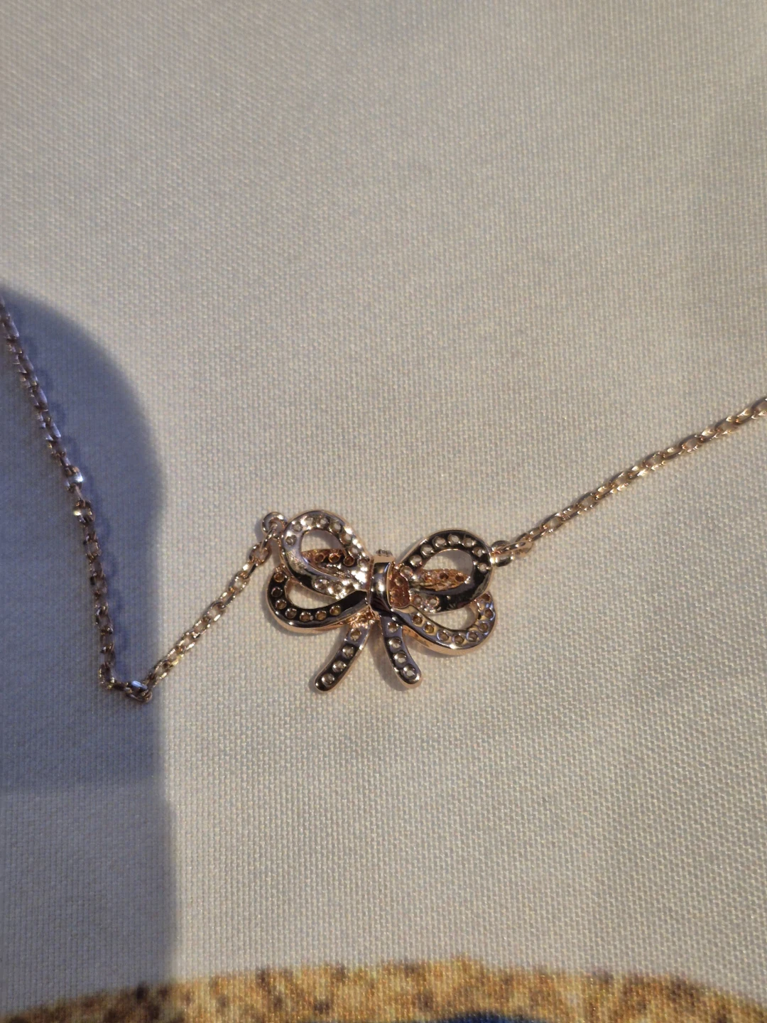 A darling bow-shaped pendant adorned with glitzy pavé stones brings coquettish vibes to a delicate chain that instantly sweetens any neckline.