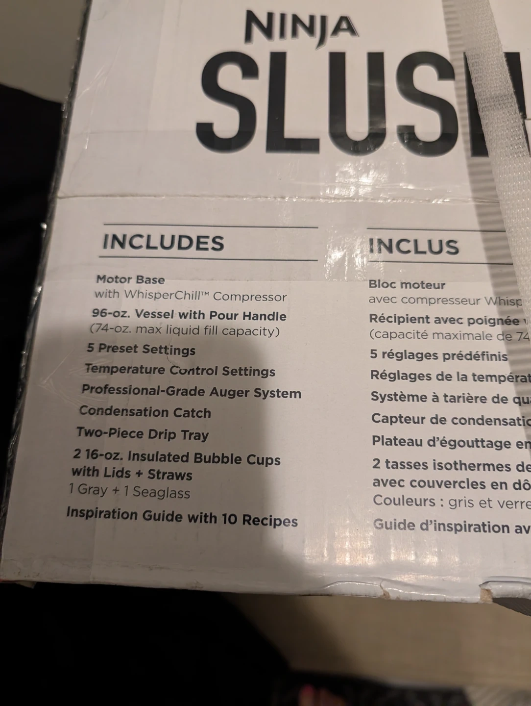 I have a brand new Ninja Slushi Professional Frozen Drink Maker for sale! It comes in the original box and includes everything you need to make delicious frozen drinks.