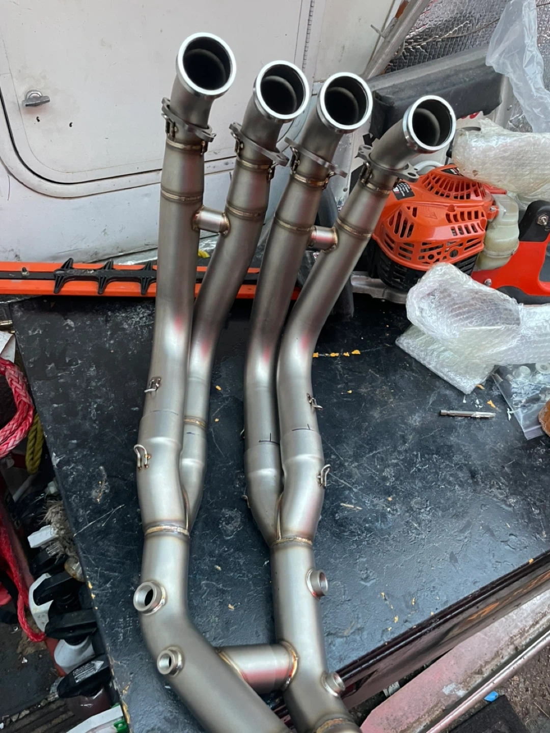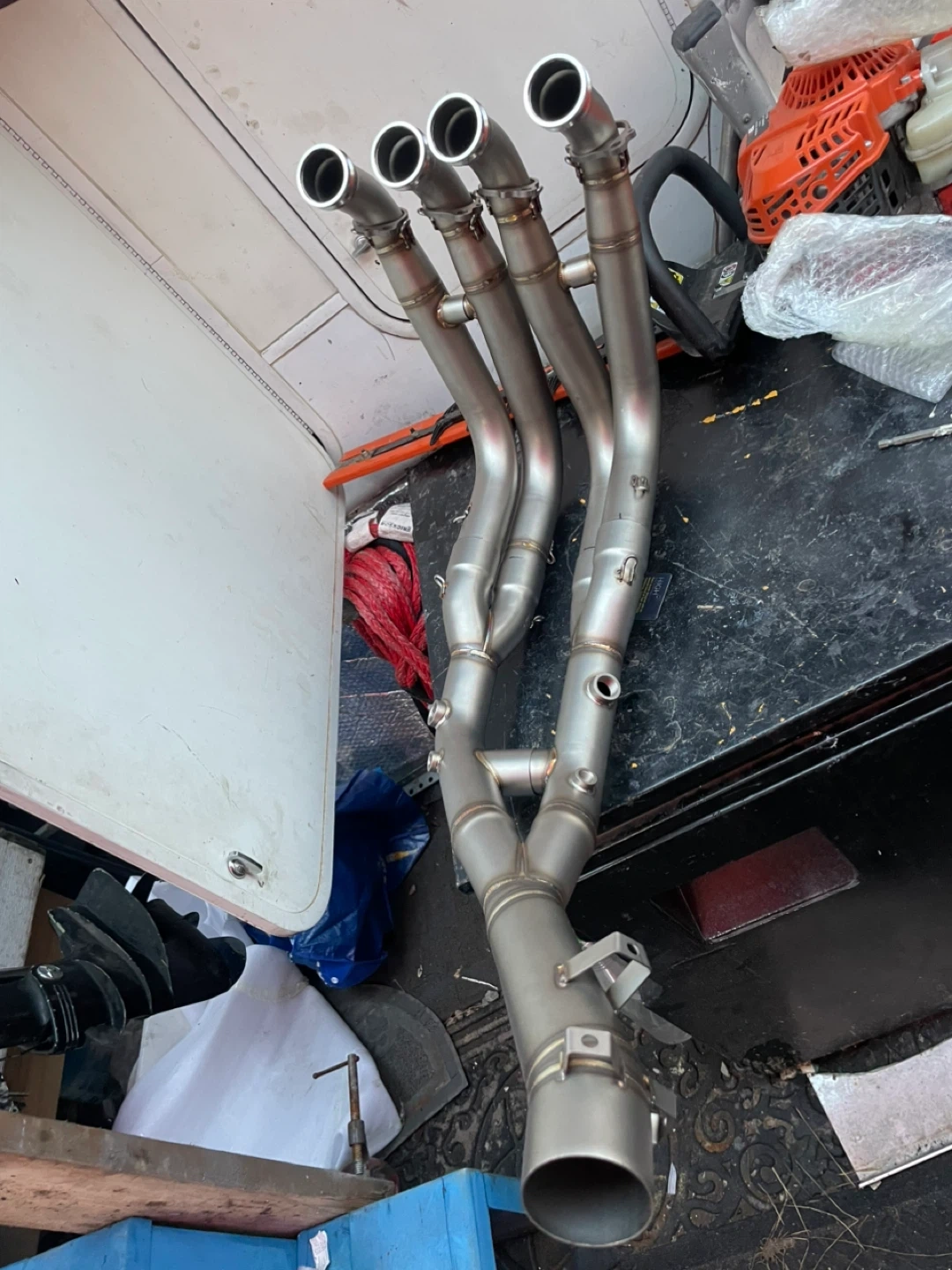 Selling a DIIOOR motorcycle exhaust pipe, specifically designed for the S1000XR models from 2020 to 2023. This stainless steel exhaust front link pipe is a great way to modify your header front link pipe for better escape connection. It also functions as a muffler and silencer for motorcycles.