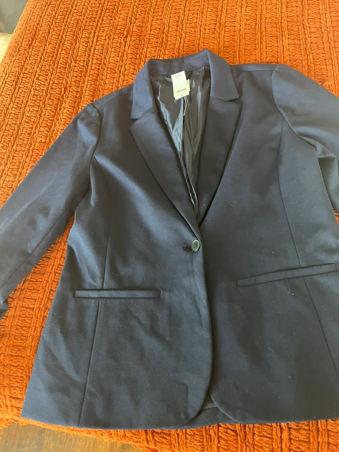 Selling a stylish GAP blazer in a classic navy blue color. It's a size medium and in great condition. Perfect for adding a touch of sophistication to your wardrobe!