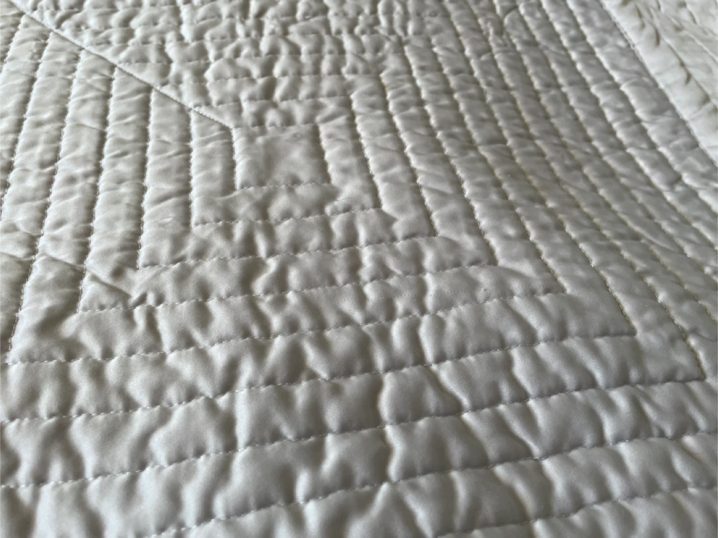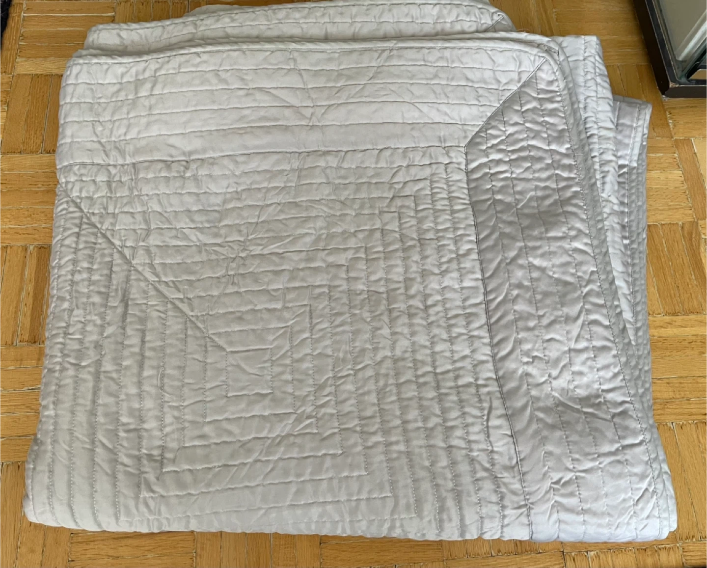 Selling a Penninton Style quilt! It's in great condition and made of 100% polyester face and back, with 100% cotton filling. It's a lovely addition to any bedroom. Brand new, amazing light grey. Queen Size.