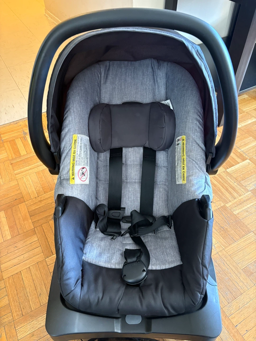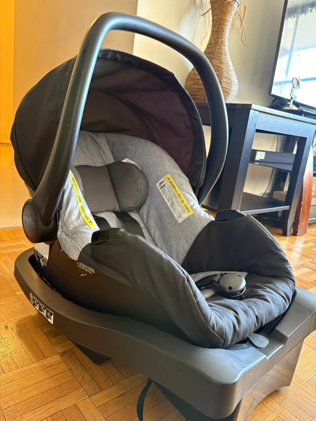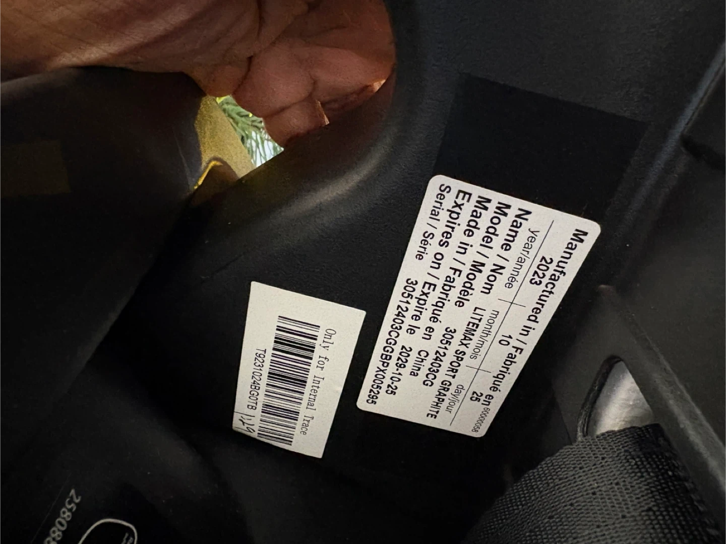Selling an Evenflo Litemax Sport Graphite infant car seat! It's in great condition and ready for a new family. The manufacturing date is 2023 October 25, and it expires on 2029 October 25