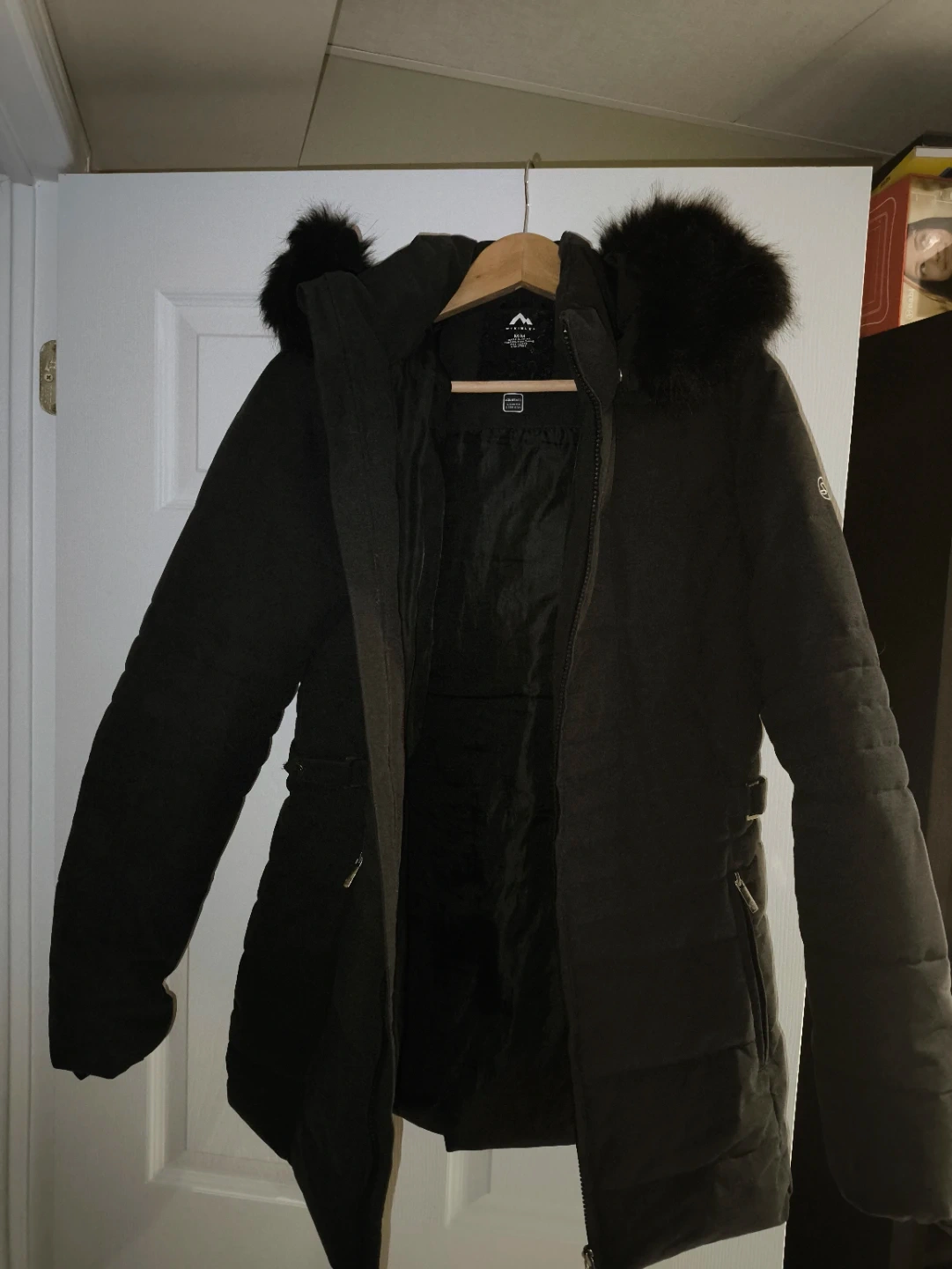 Selling a like-new black McKinley women's winter jacket in size medium. It's in great condition and features a stylish design with a fur-trimmed hood. You can remove the fur trim and leave the Hood or remove both. The jacket is made with Aquabase technology, offering 5,000 mm waterproofing and 6,000 g/m²/24h breathability to keep you warm and dry during the colder months.