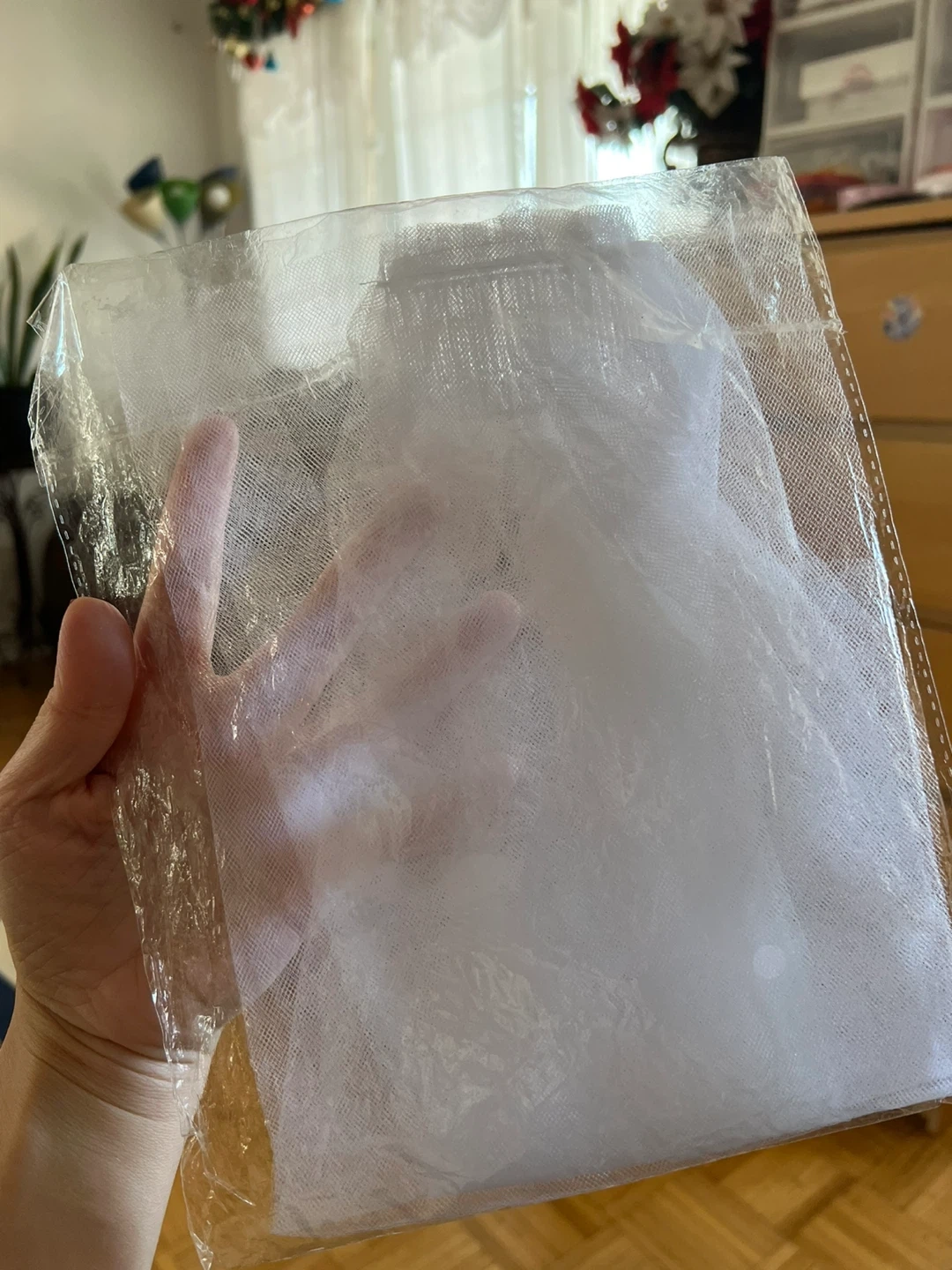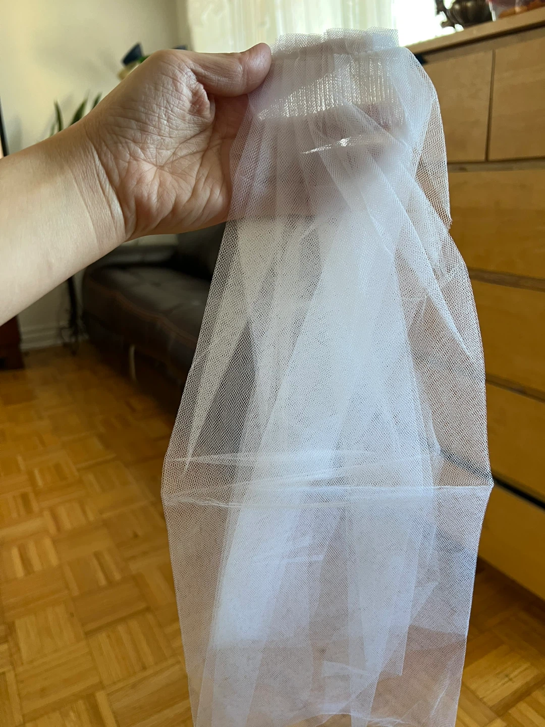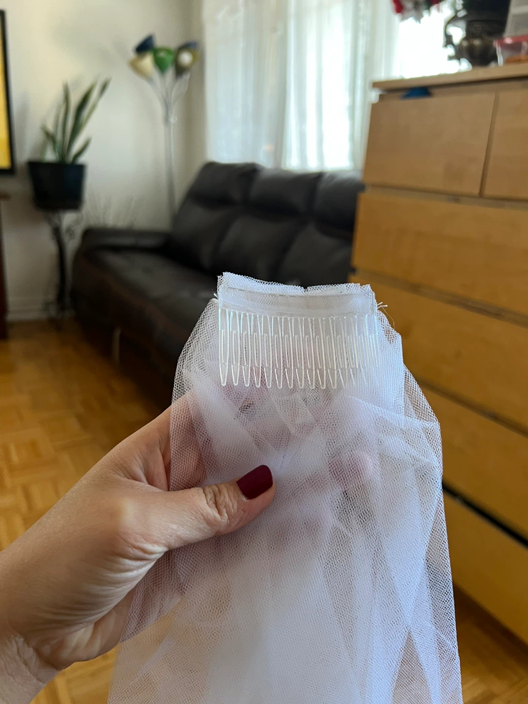 Selling a simple bridal veil in white. It's made of a soft, lightweight material and has a comb attached for easy placement. Perfect for a wedding or special occasion!