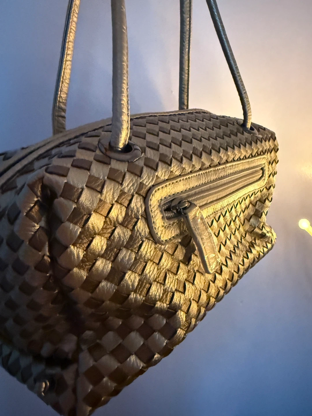 Selling a Sondra Roberts Squared woven tote bag. It's a stylish and unique bag with a beautiful woven pattern. The bag is in great condition and ready for a new owner!