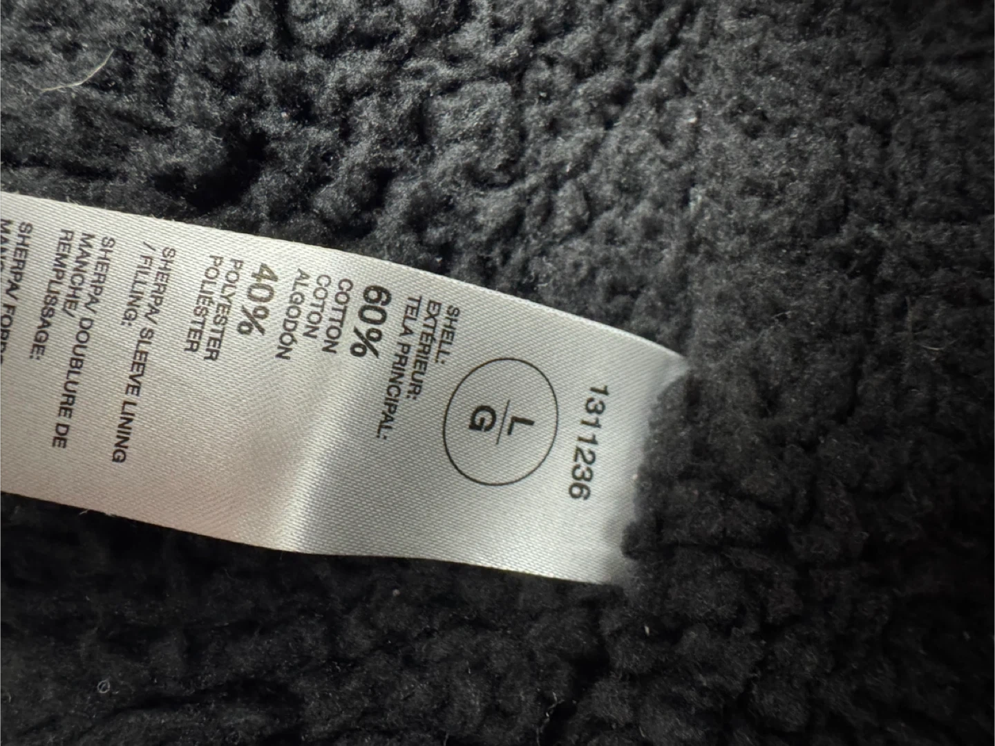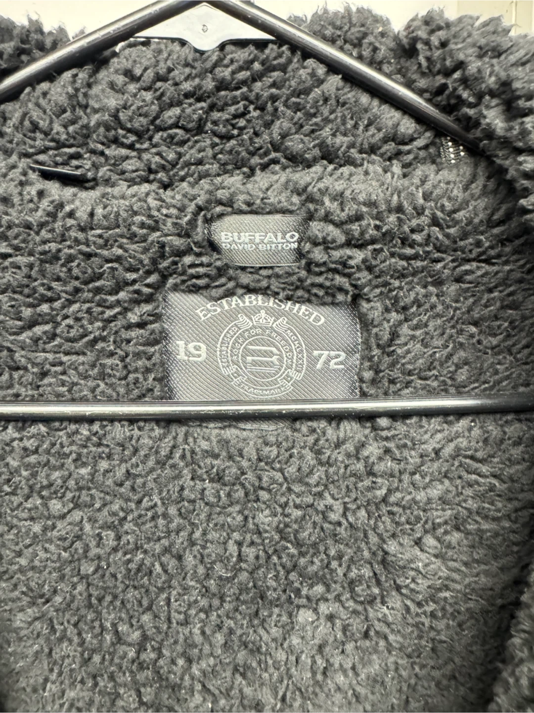 Cozy up with this Buffalo David Bitton hoodie! It's a size large and features a warm sherpa lining. The outer shell is made of 60% cotton and 40% polyester. Perfect for chilly days!