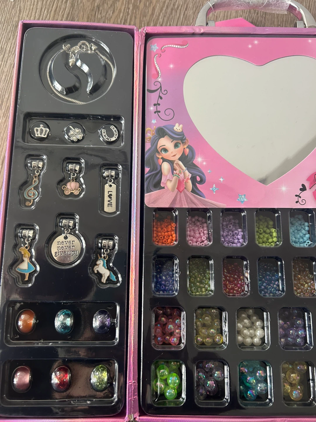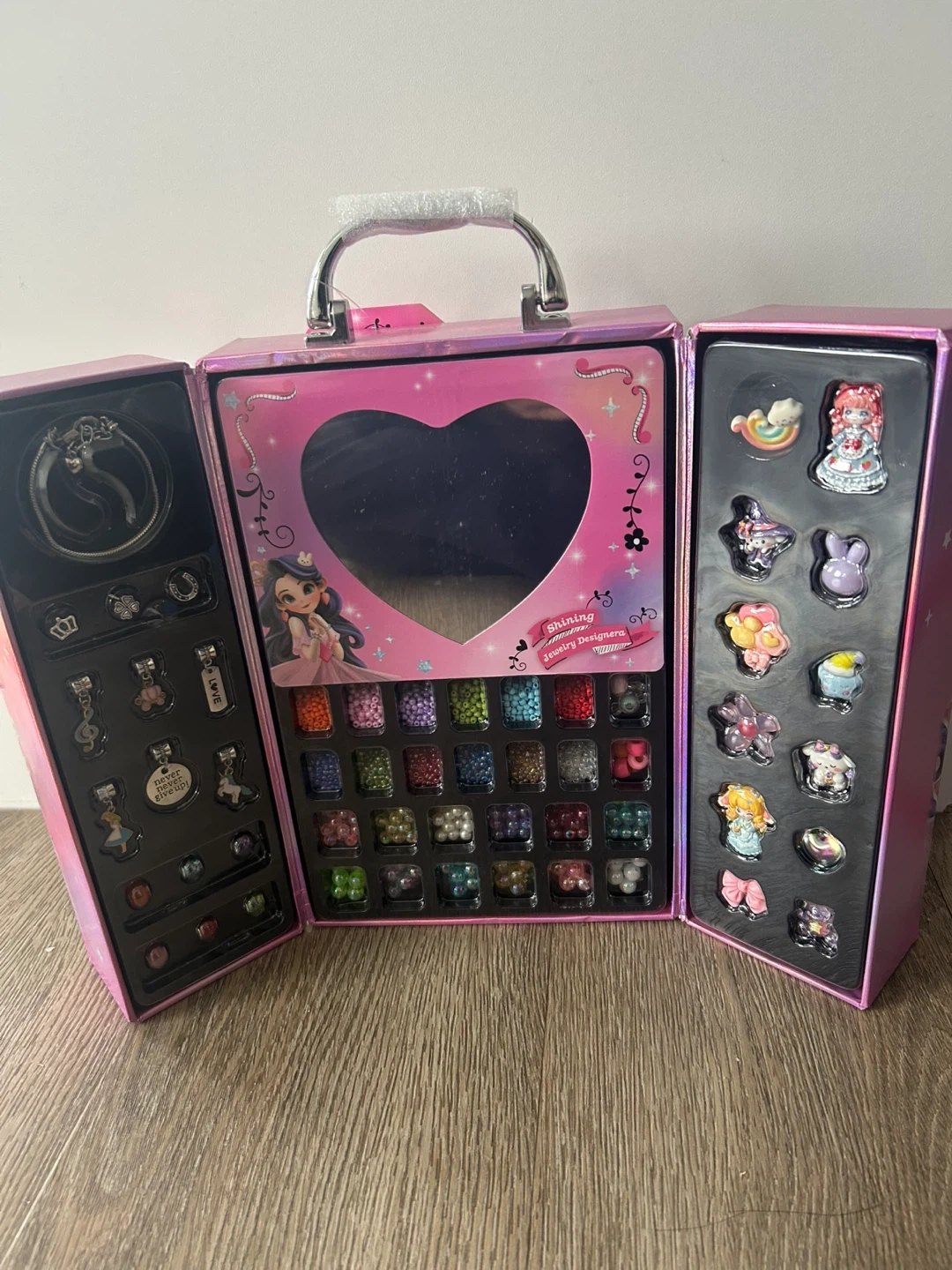 Girls Jewelry set for ages 5+. It comes with a variety of beads and charms to make your own style of jewelry! Perfect for creative kids who love to design and create.