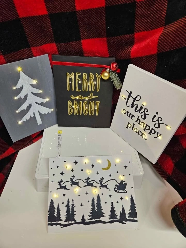 Farmhouse Christmas! Nothing over $20!! Do you need a hostess gift? Small gift for one of your co-workers or maybe your neighbor, kid's teacher? Do you want to add a little something to your existing Christmas decor? Lighted canvas or frames $15 each. Lighted framed canvas $18 each. CHECK MY OTHER LISTINGS FOR MORE OPTIONS.