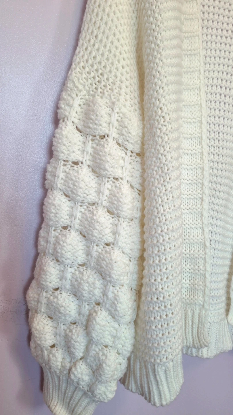 👚 Women's white cardigan, with unique bubble detailing on the sleeves, size small. In a good condition! Never used.