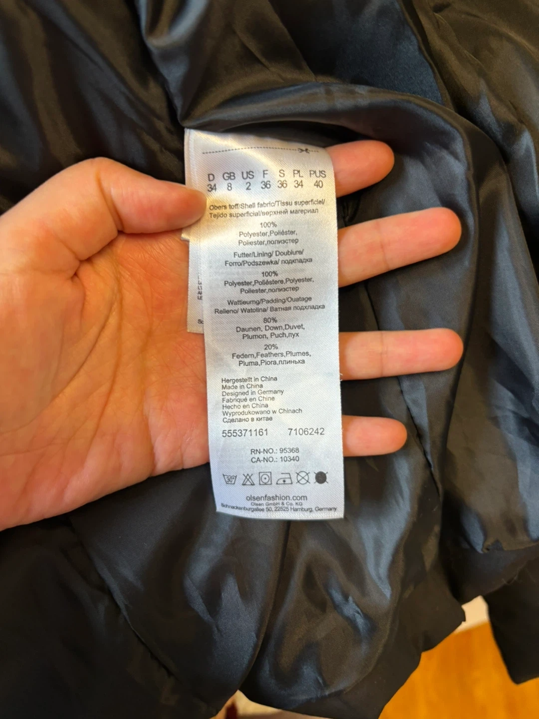 Olsen down jacket. Only worn twice. 80% Dawn. Real rabbit fur.