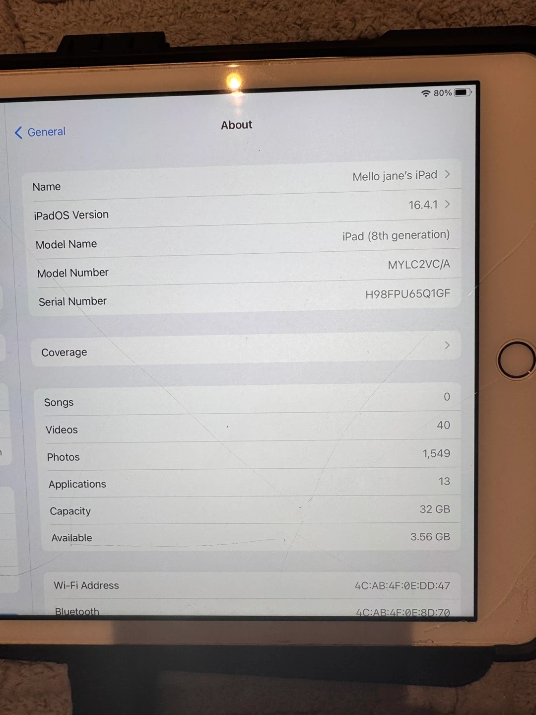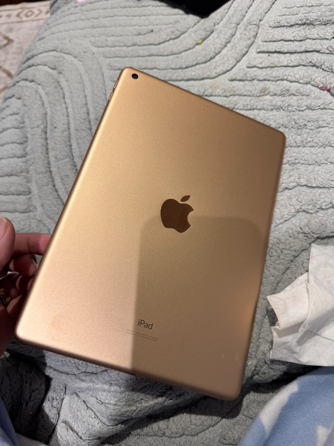 Selling a gold Apple iPad 8th generation with 32GB of storage. The model number is MYLC2VC/A. It's in good condition and ready for a new owner!