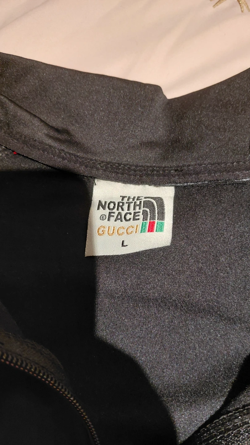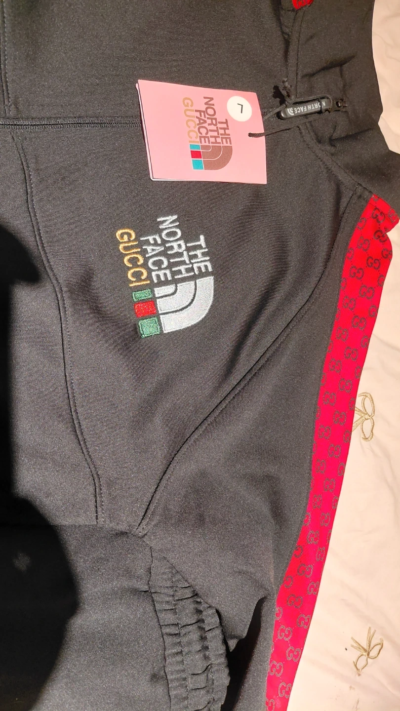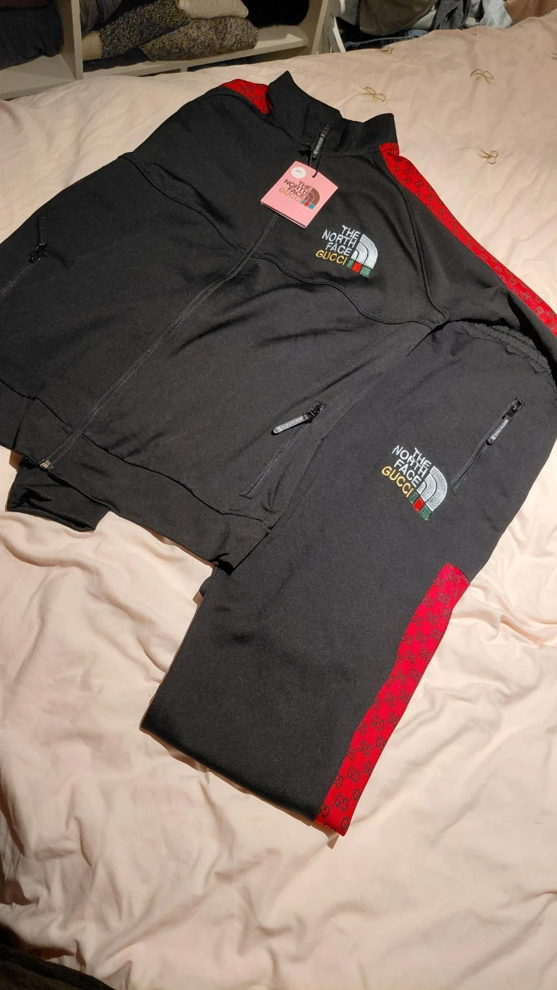 Selling a The North Face x Gucci tracksuit in size large. It's in great condition and features the iconic logos of both brands. Perfect for adding a touch of luxury to your casual wear!