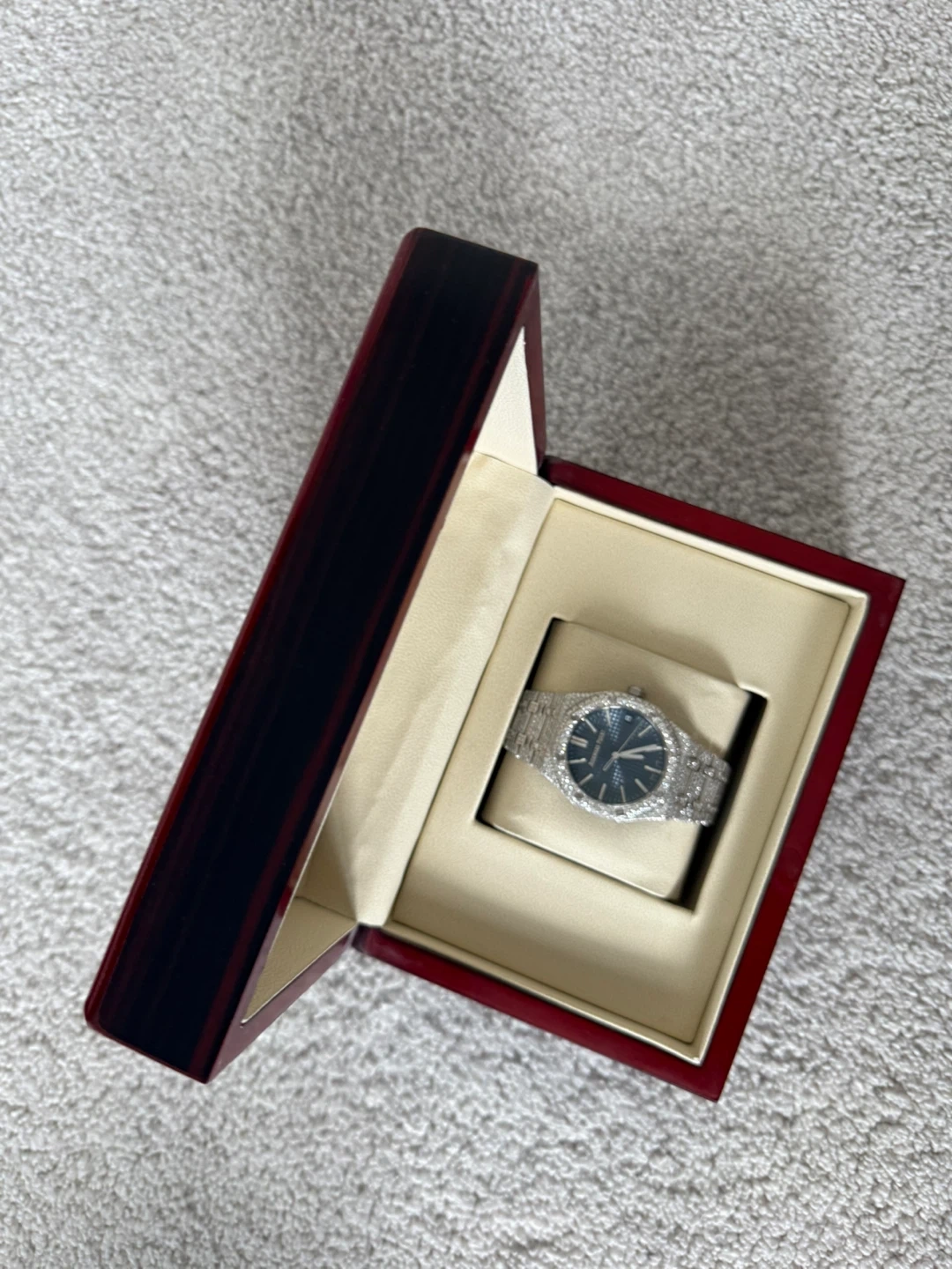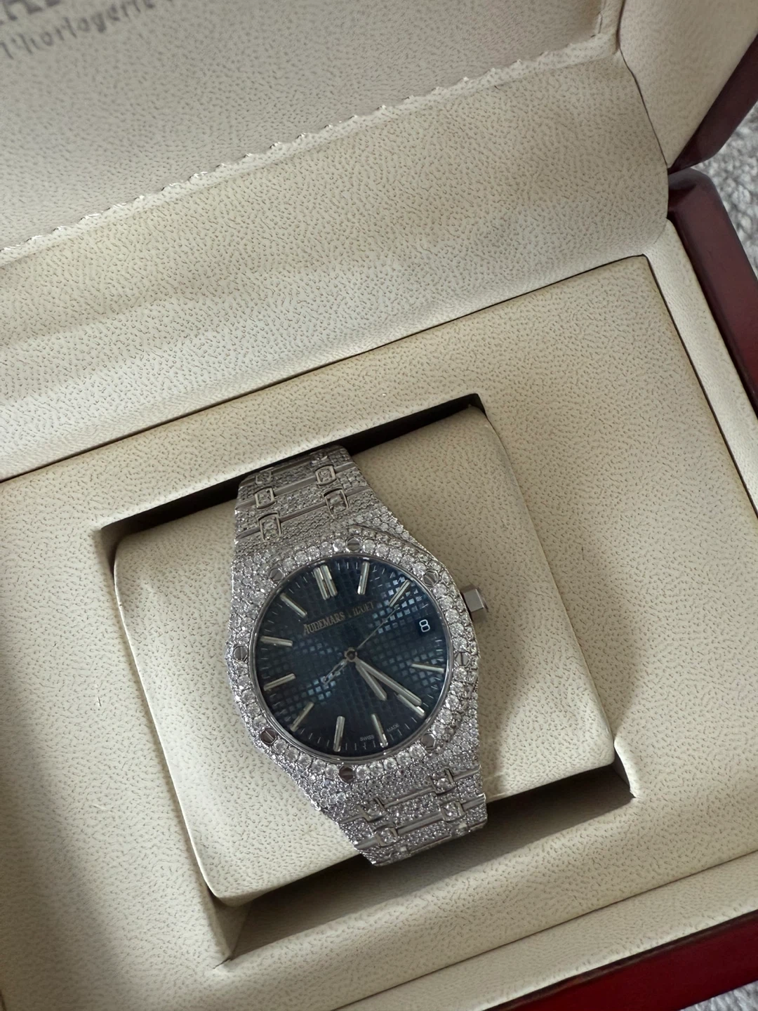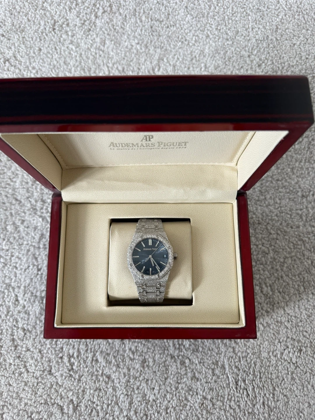 Buy & SellAudemars Piguet Royal Oak Iced OutAudemars Piguet Royal Oak Iced Out$3,232Selling an Audemars Piguet Royal Oak watch, iced out. It comes with its original box. A stunning timepiece!BrandAudemars PiguetWHERE TO MEETTorontoView MapSELLERverifiedJoshParis681 review1 chats·0 favorites·90 viewsSEND CHAT TO SELLERHi Josh! I’m interested in your listing.Hi Josh! I’m interested in your listing.Get the Karrot app to chatSign In to chat