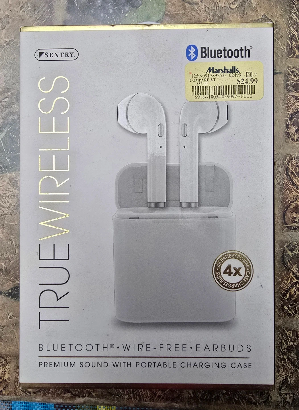 Note: No charger included. I purchased this to use the charger for my Apple earbuds that I lost the charger and it works so selling this Sentry earbuds without charger FOR PARTS. Otherwise, it's new.