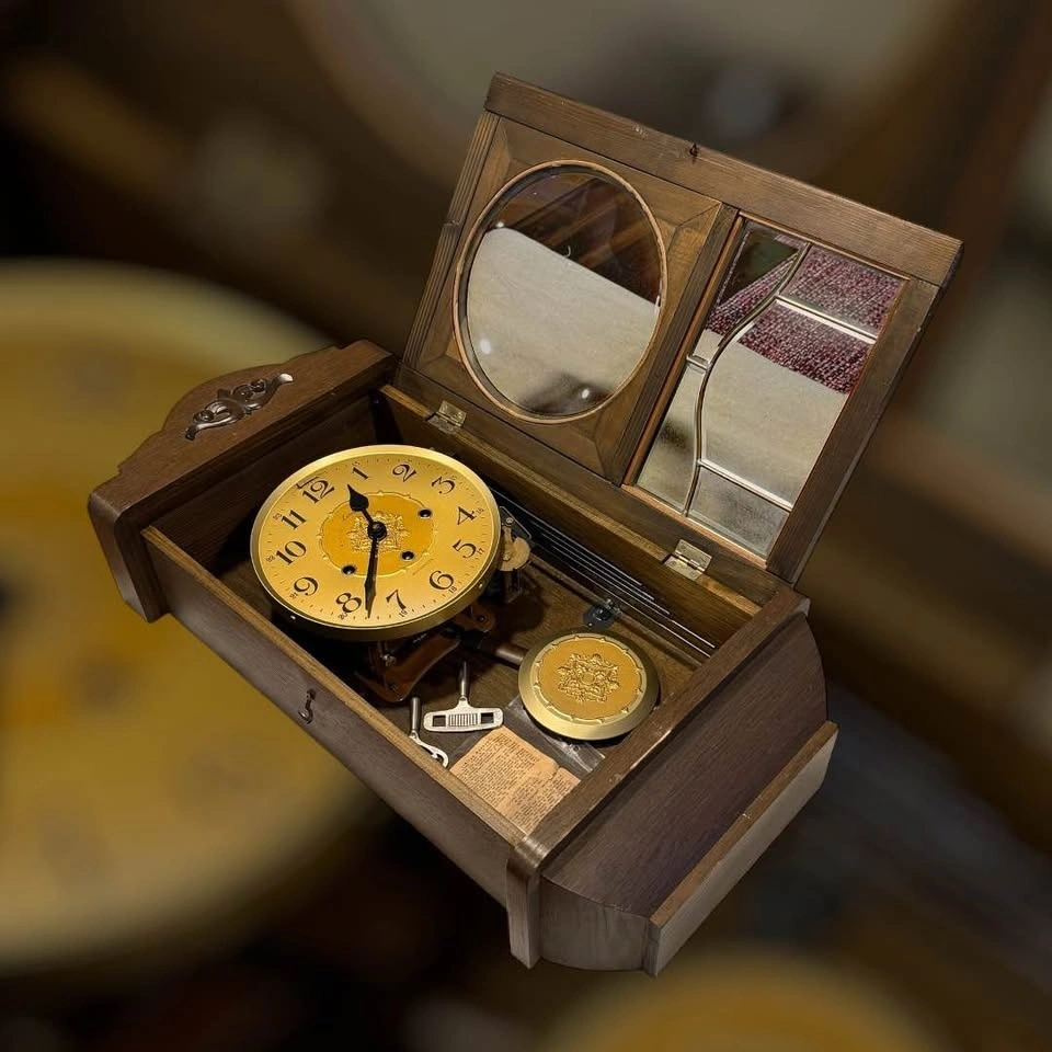 • Case Material: Wood (likely oak or stained hardwood).