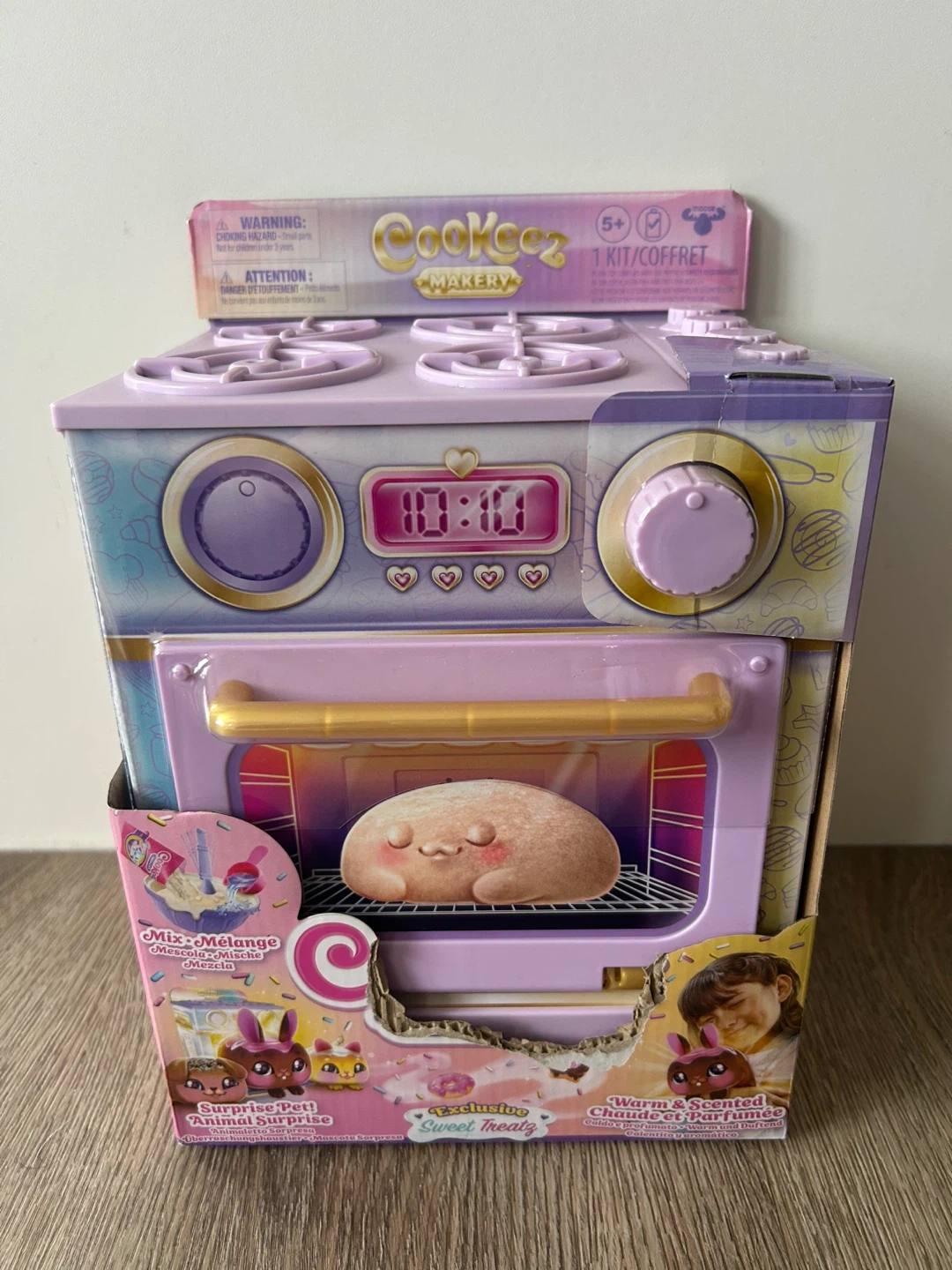 a brand new Cookeez Makery oven playset! It comes in its original box and features sounds and reactions, plus a warm and scented surprise!