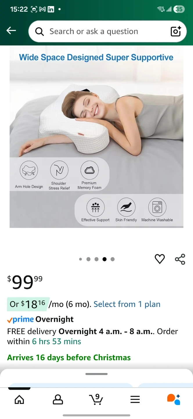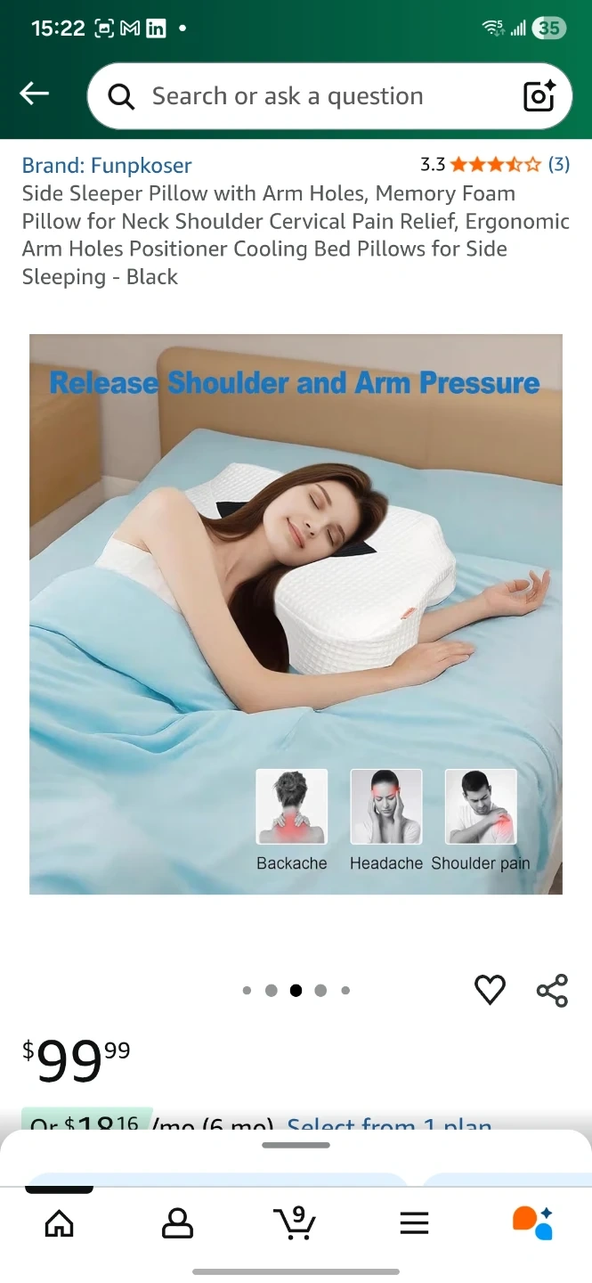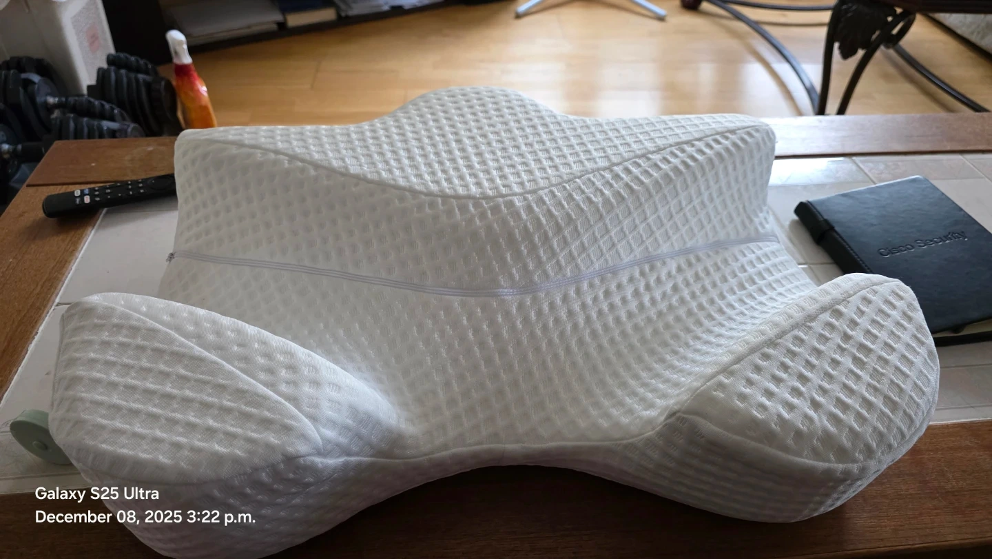 Selling a gently used Funpkoser Side Sleeper Pillow with Arm Holes. It's designed with memory foam for neck and shoulder support, and has a skin friendly, machine washable cover. Originally bought for $99.99.