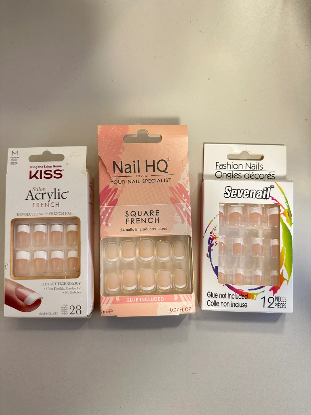 Selling a bundle of press-on nails from Kiss, Nail HQ, and Sevenaii!